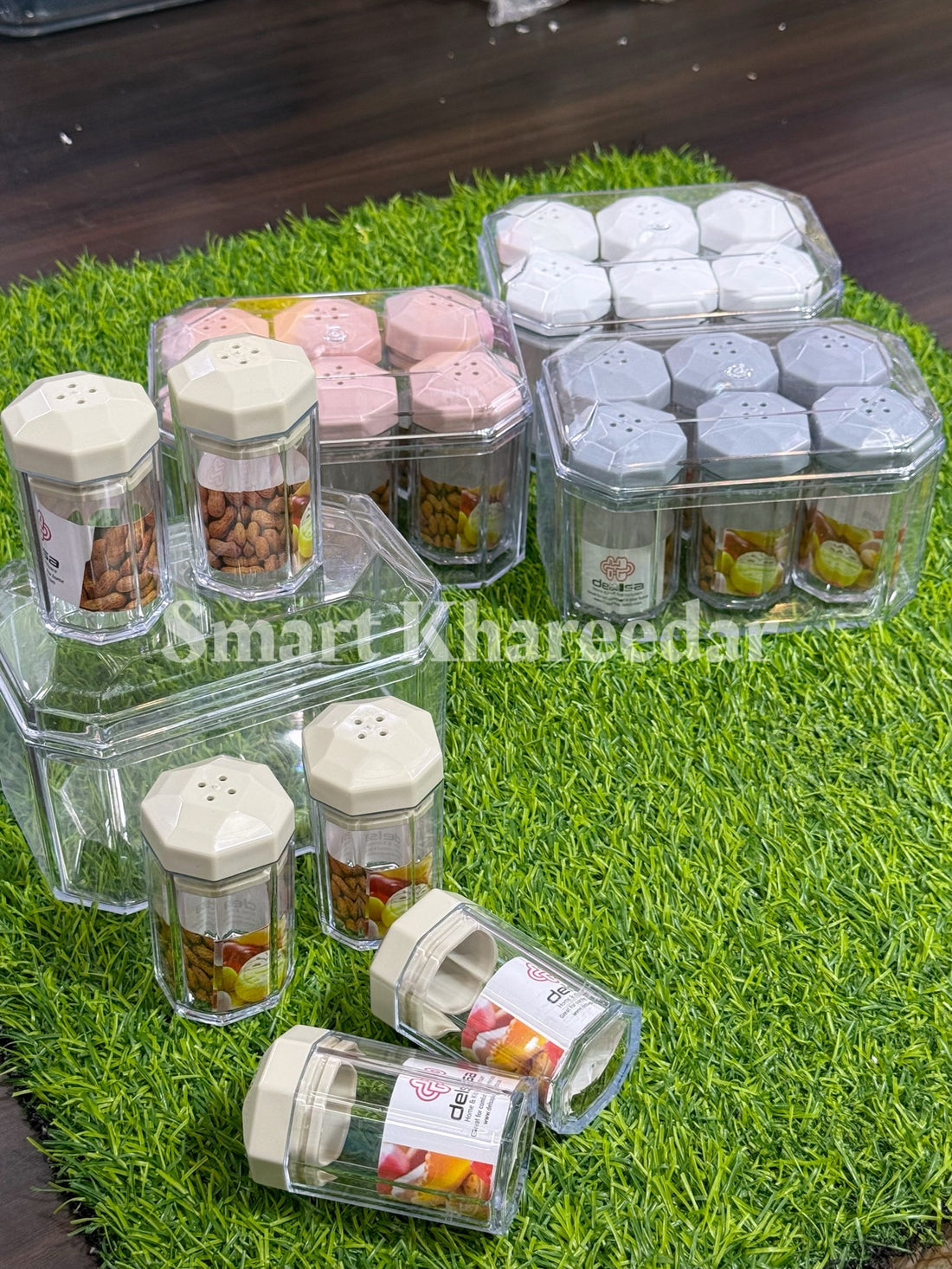 6pc Square Salt & Pepper Shaker Set with Acrylic Box - Namak Dani set