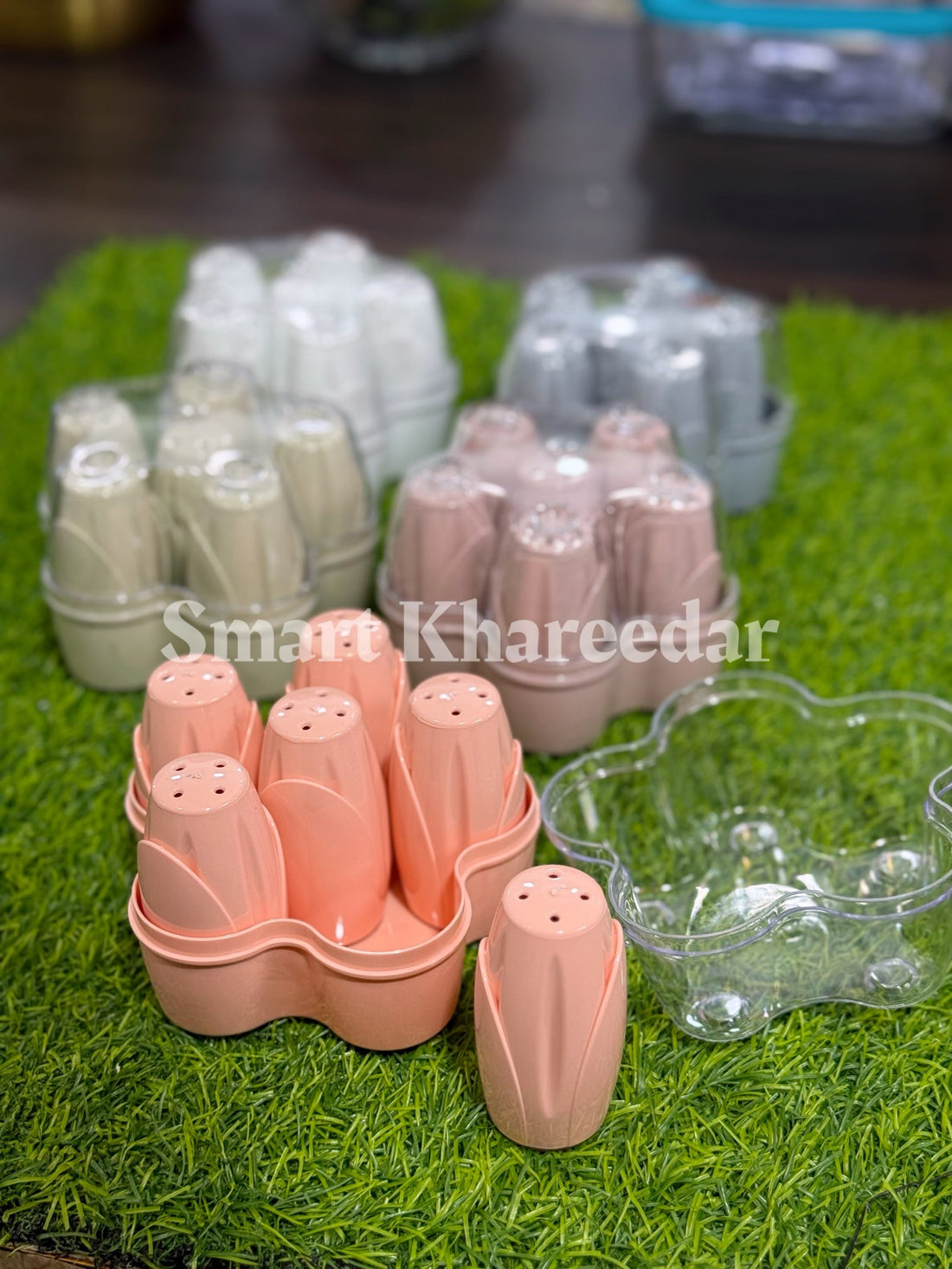 6pc Flower Shape Salt & Pepper Shaker set with Acrylic Box - Namak Dani set