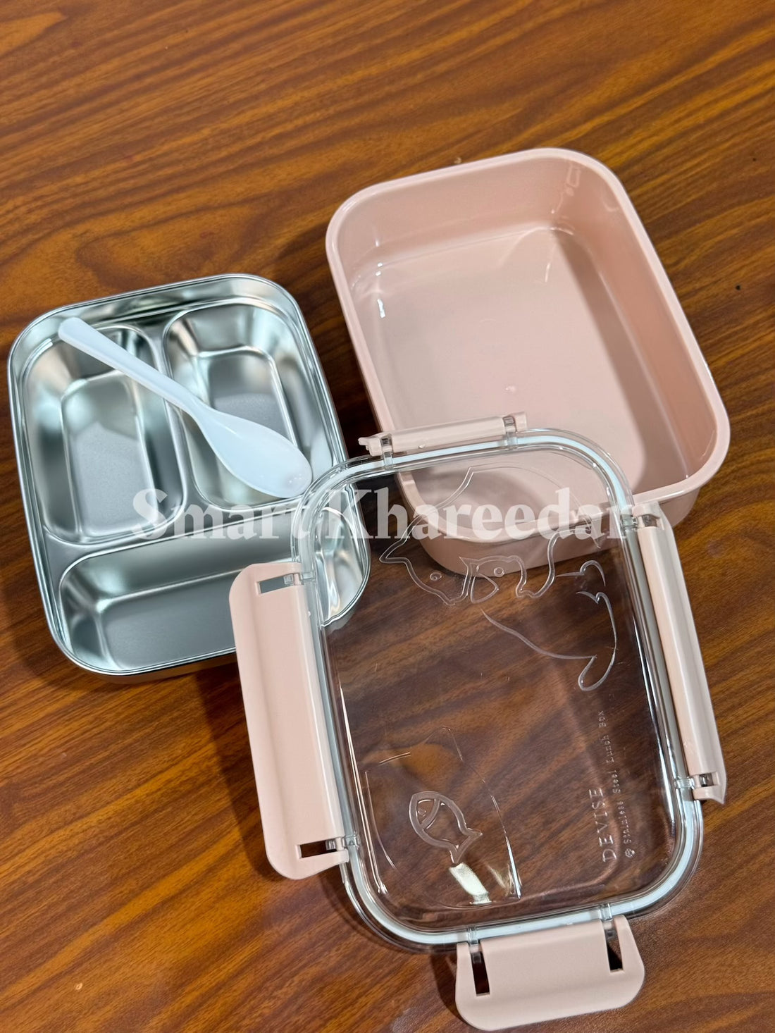 3 Section Stainless Steel Airtight Banto Lunch Box with Cutlery