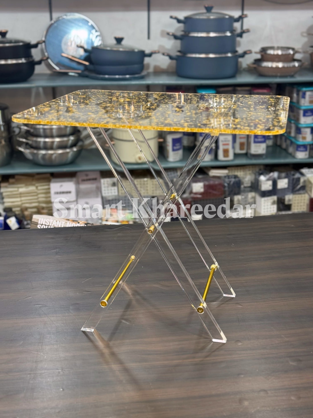 Gold Flake Acrylic Foldable Table | Elegant Clear Dining & Coffee Table - 40.6 × 50.8 × 45.7 cm