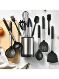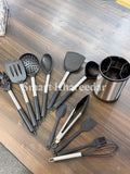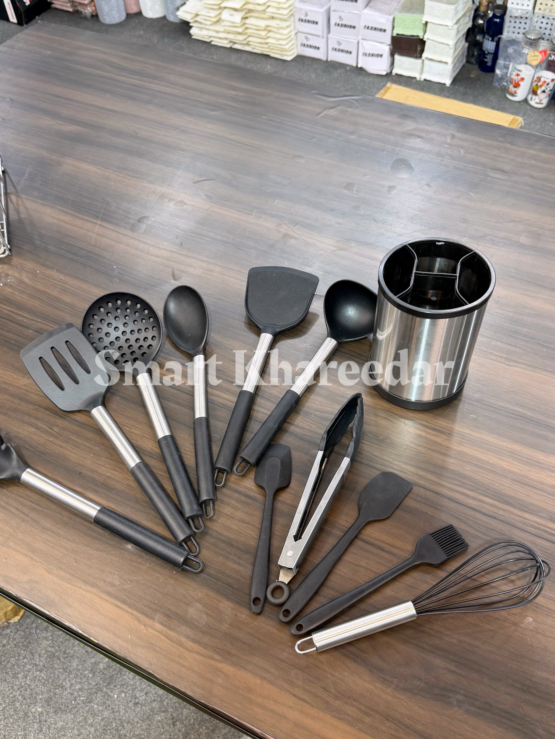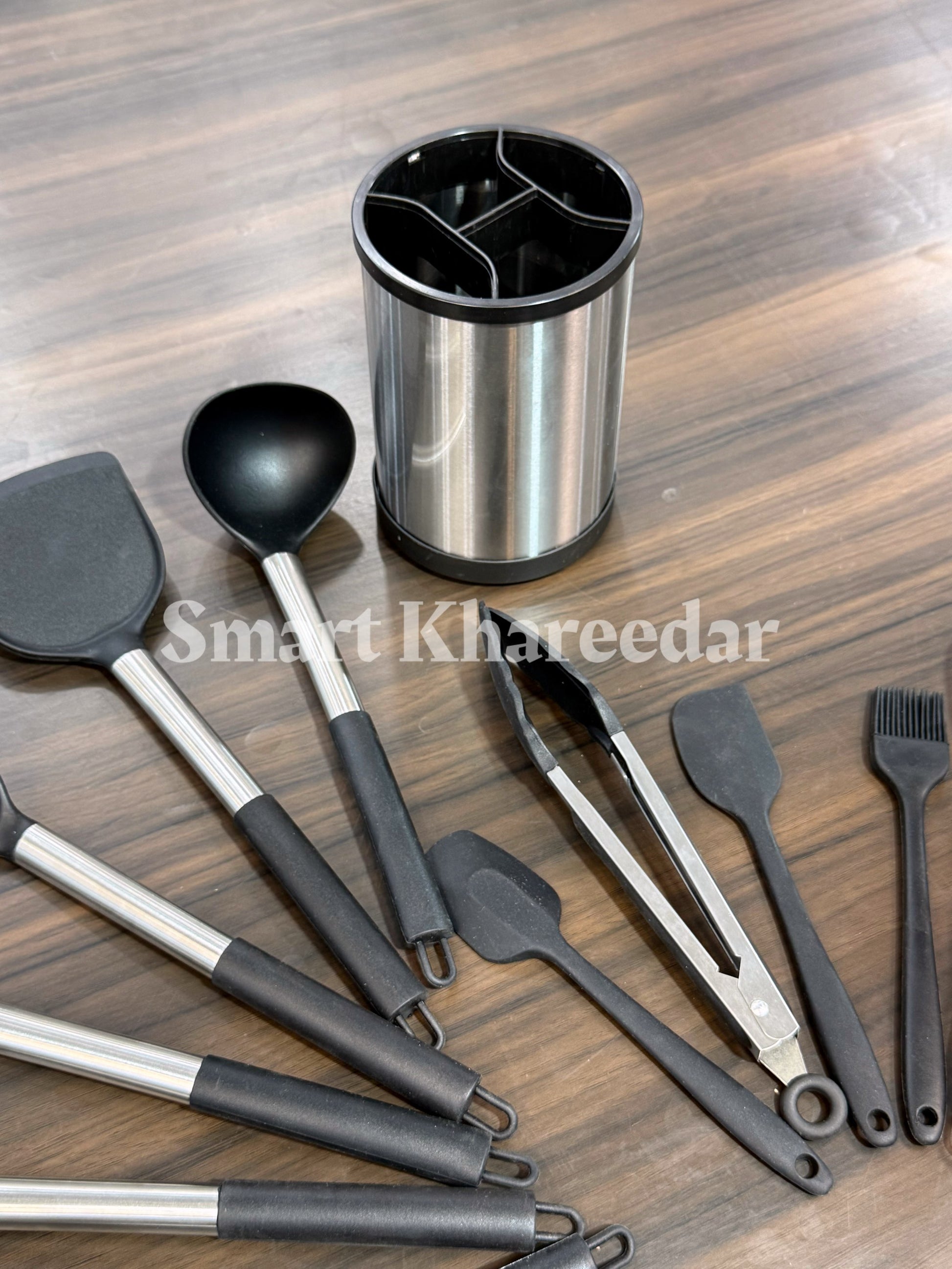 12-Piece Rotating Kitchen Utensil Set – Heat-Resistant Silicone & Stainless Steel Cooking Tools with Holder