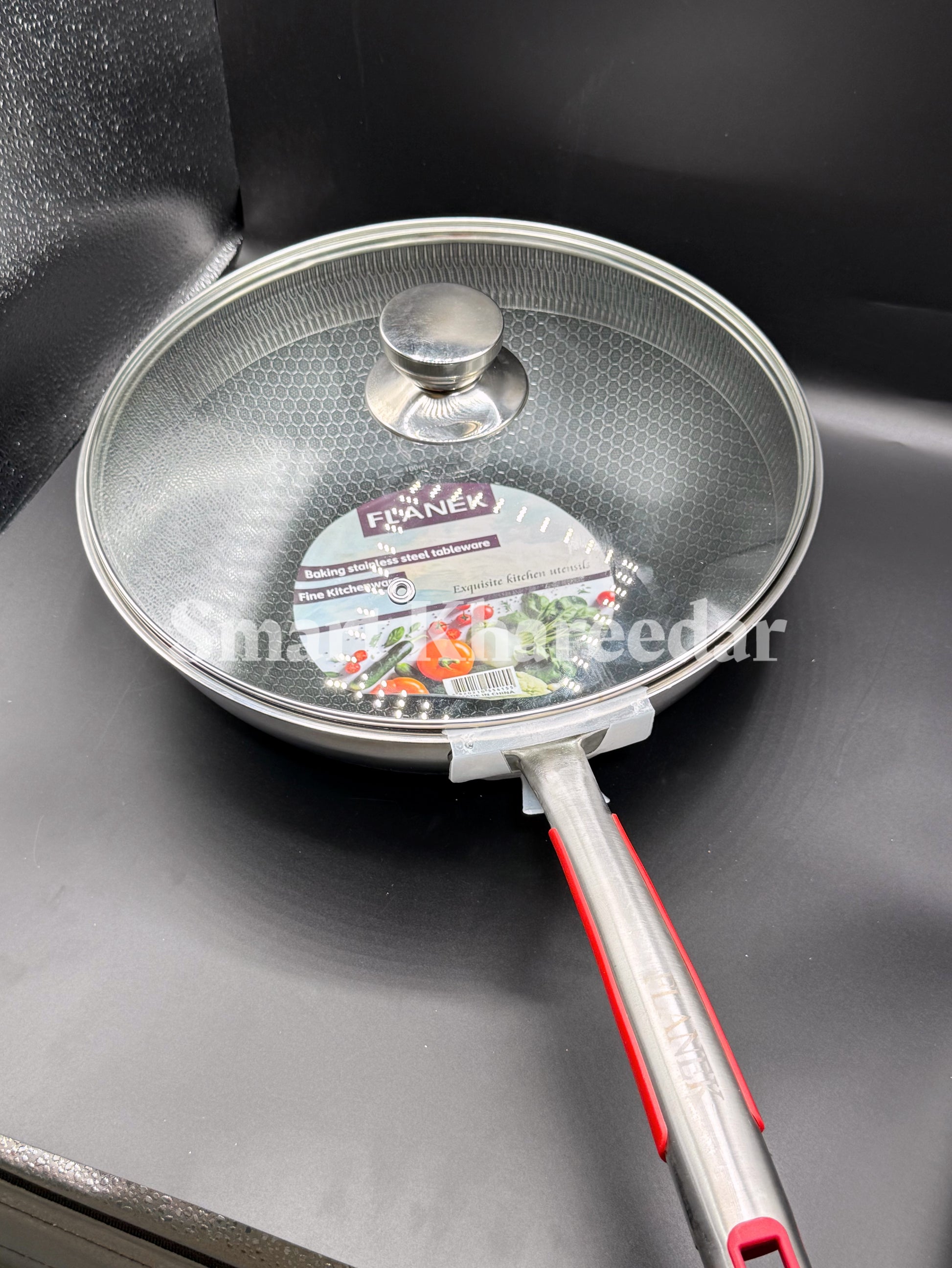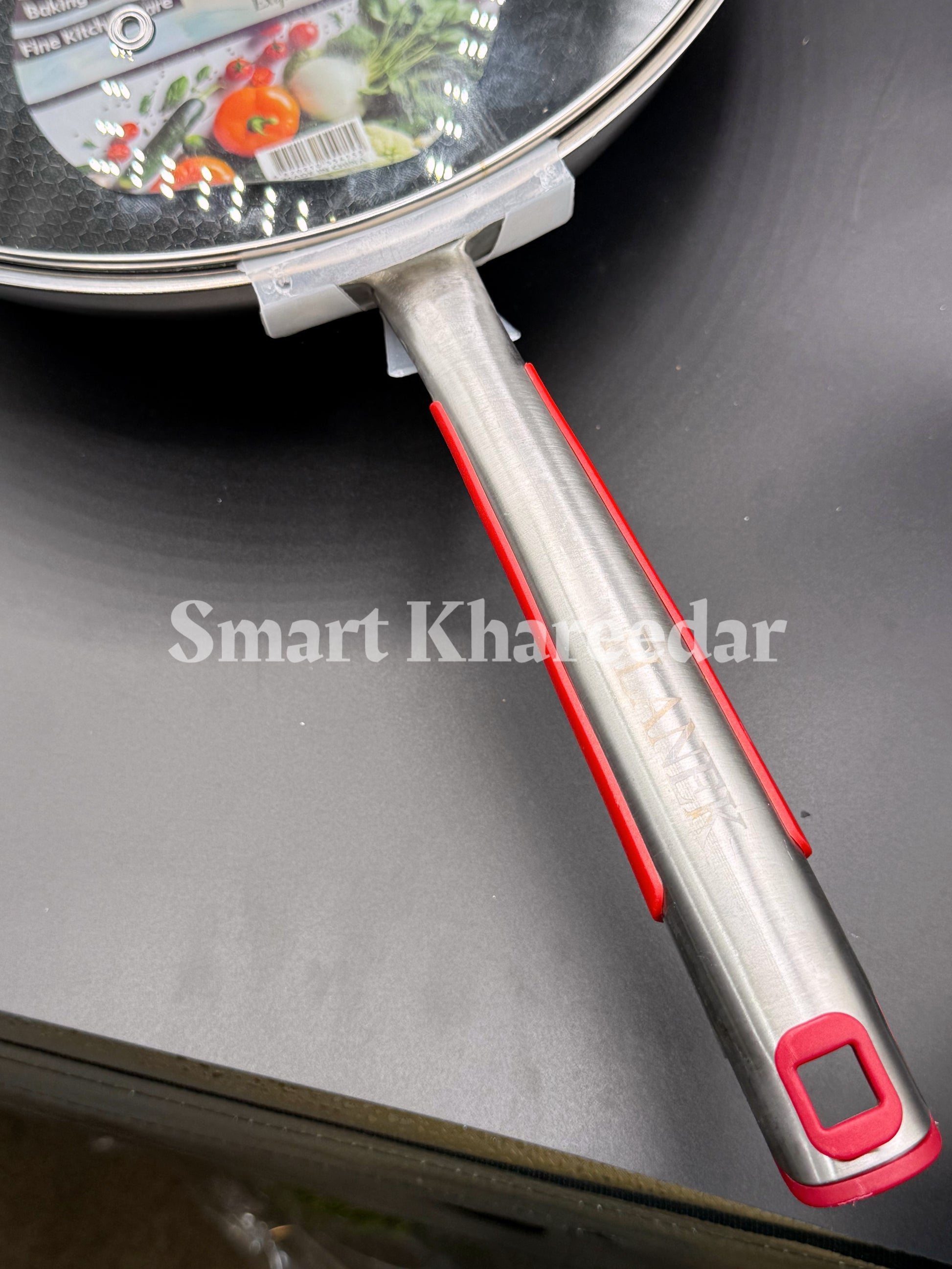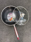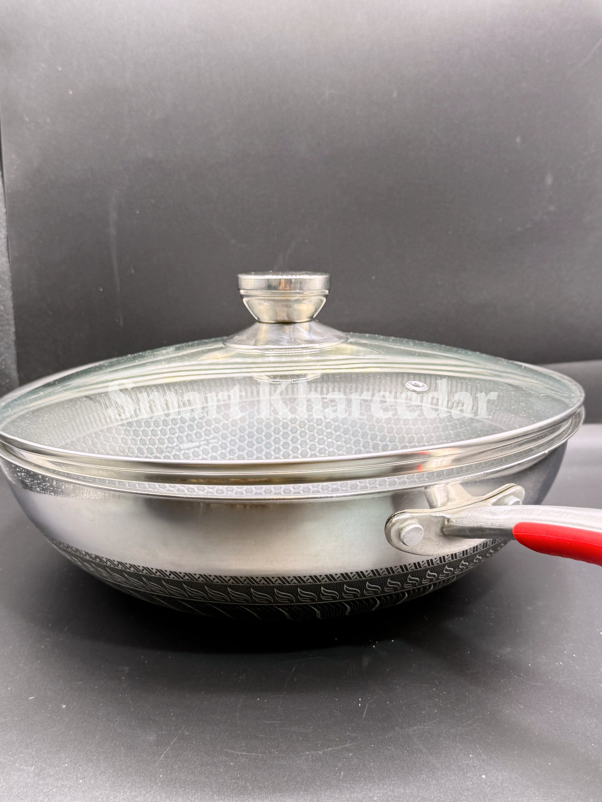 Flanek LaserCut HoneyComb Karahi with Lid and Long Handle - Shallow Pan