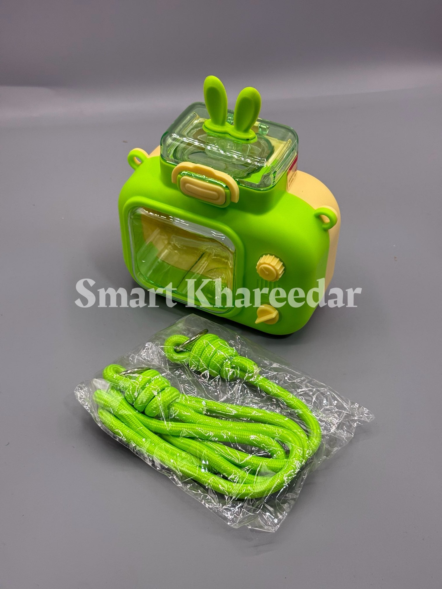 600ml Rabbit TV Water Bottle Portable Large Capacity Straw Water Cup Plastic Anti Fall Sports Water Kettle Children's Girl