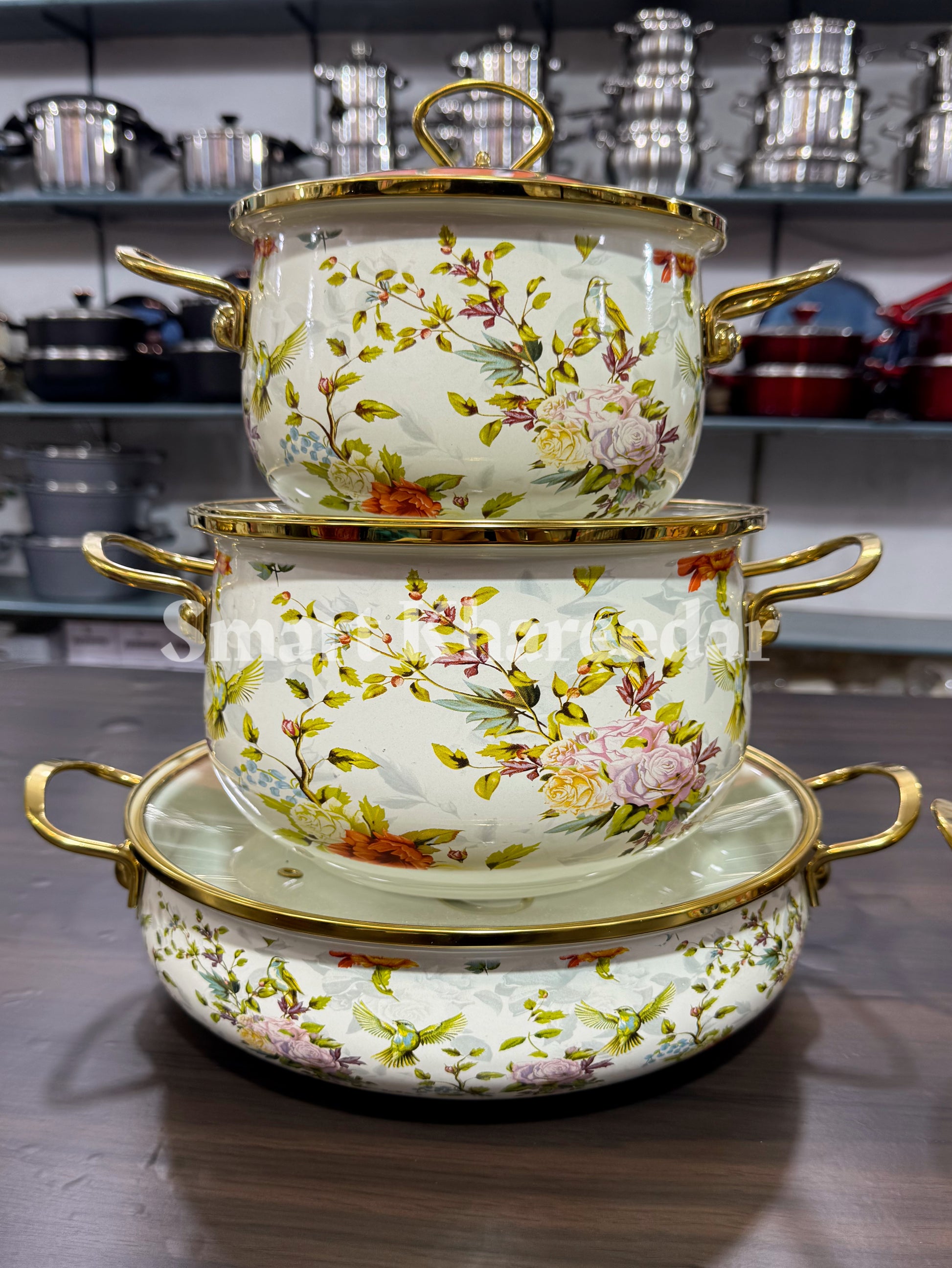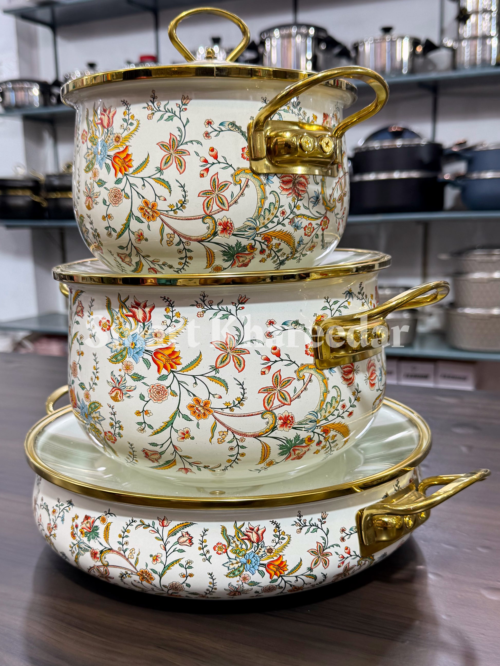 BOSHILANG 3pc Enamel Casserole With Lid Set [Cookware]