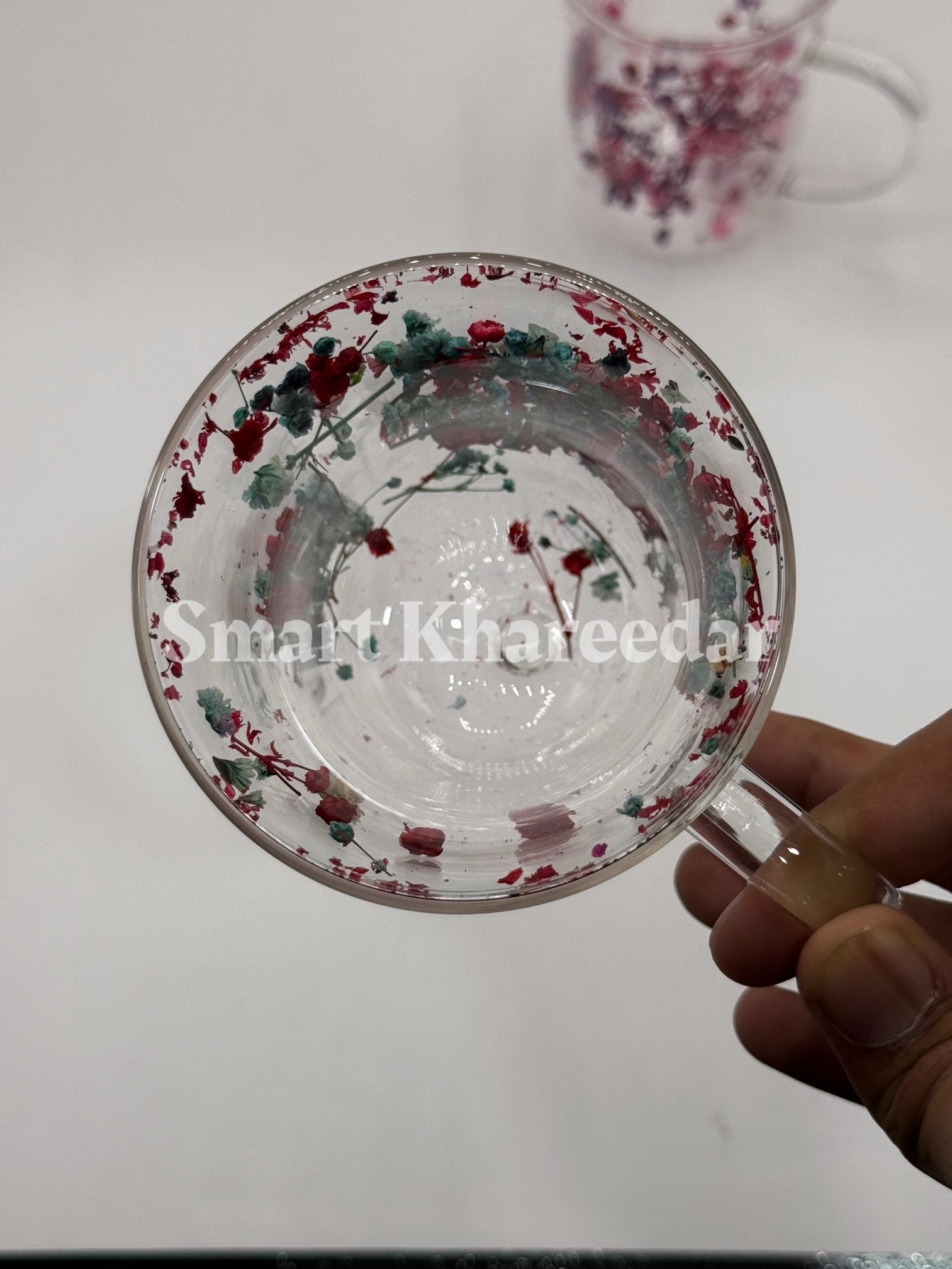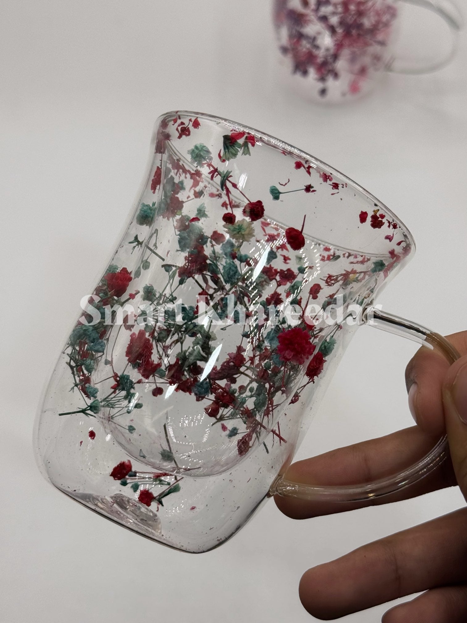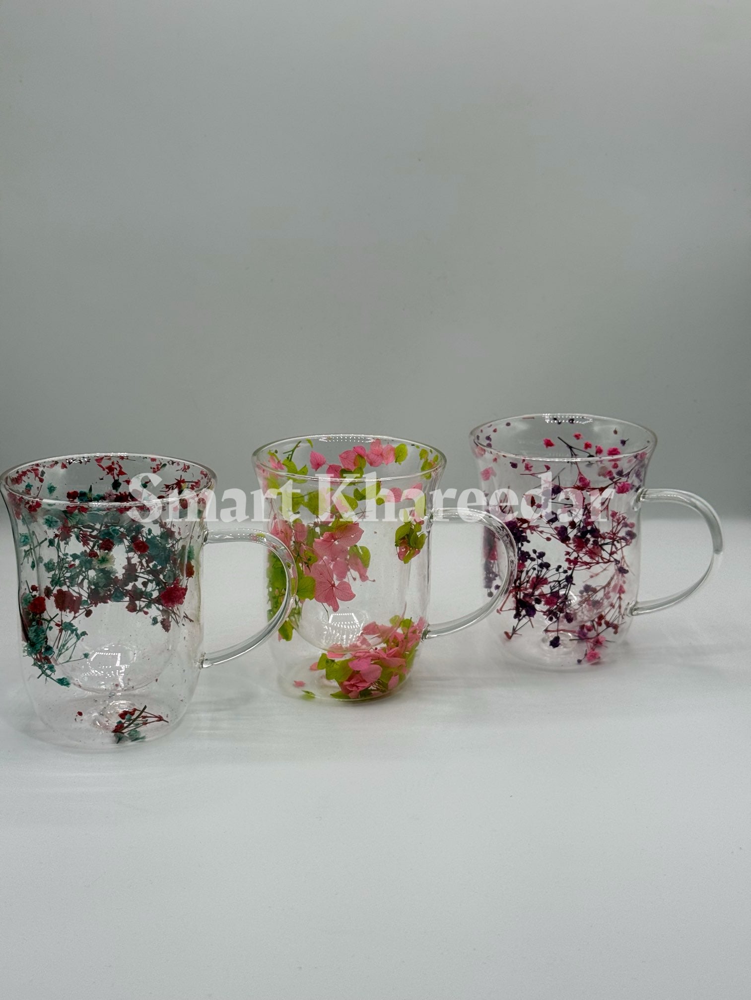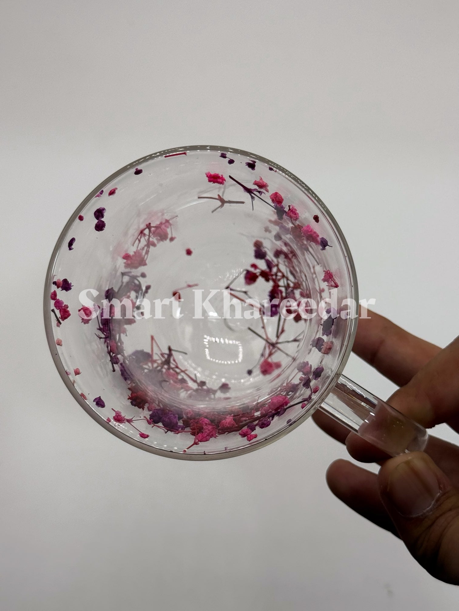 Double Wall Dry Flower 320ml Glass Coffee Mug and Tea Cup | Model no 4