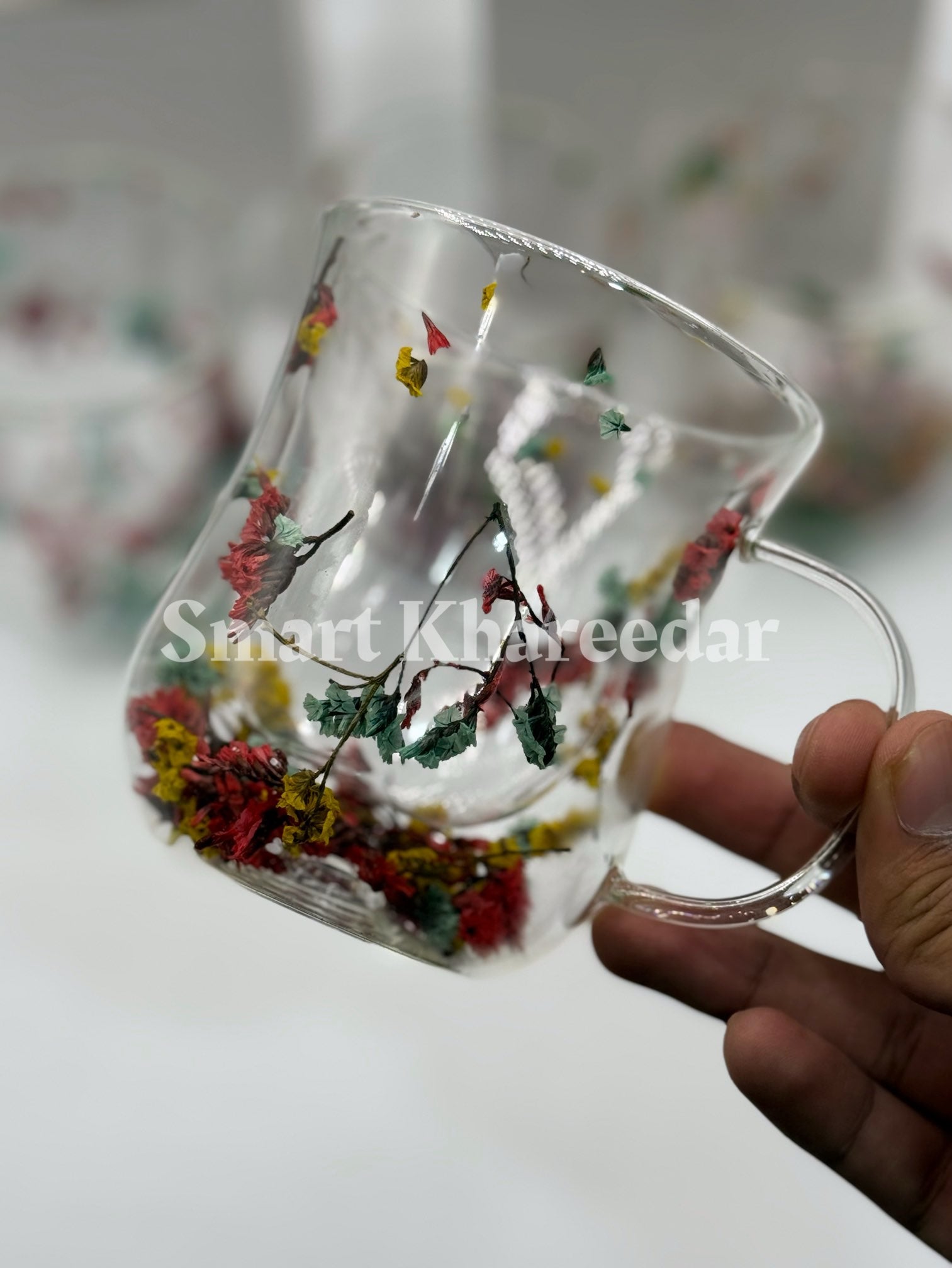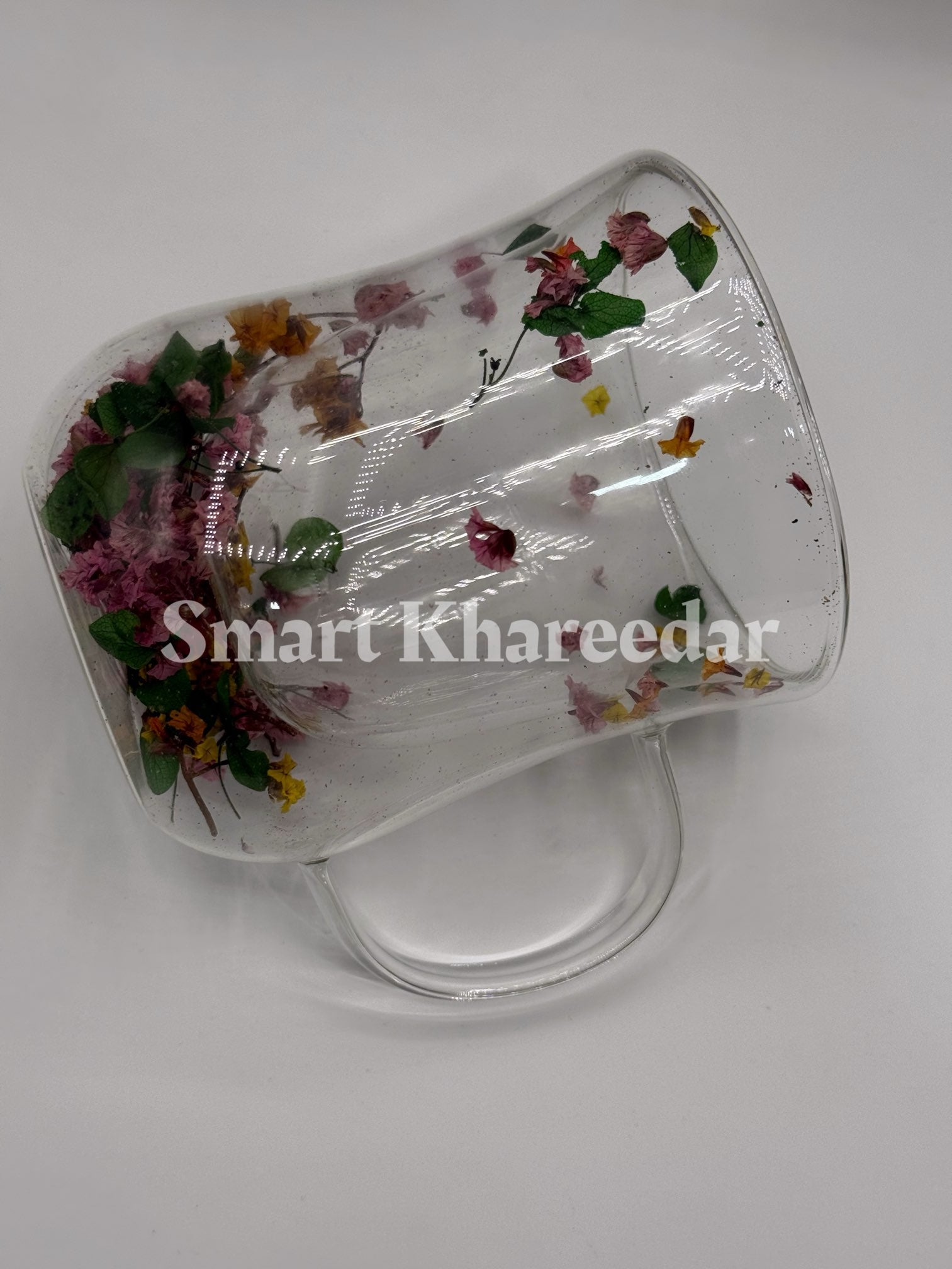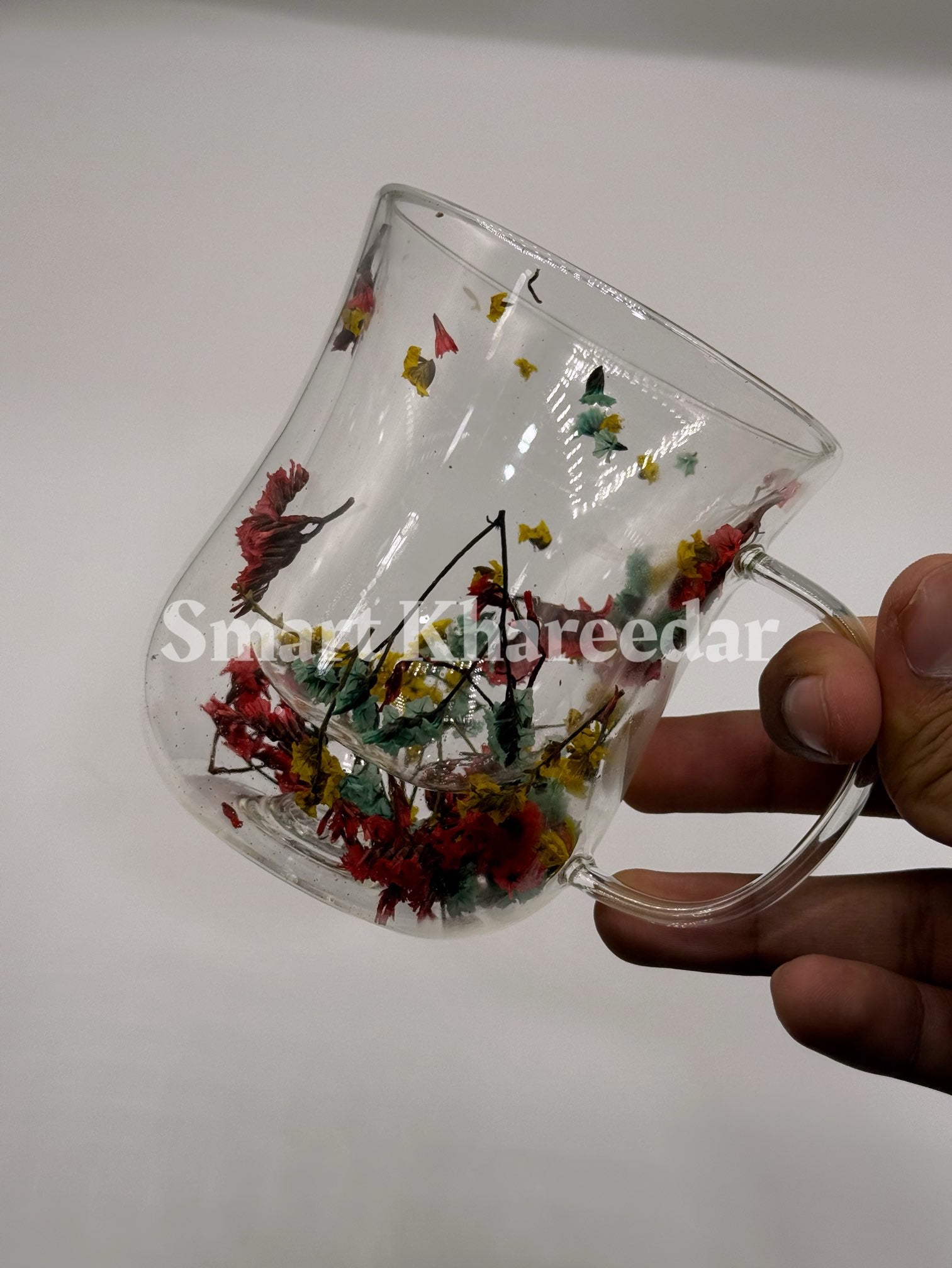 Double Wall Dry Flower 320ml Glass Coffee Mug and Tea Cup | Model no 5
