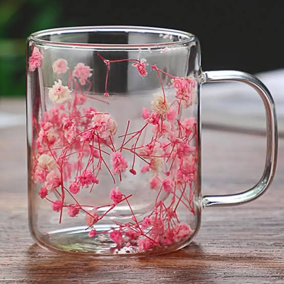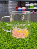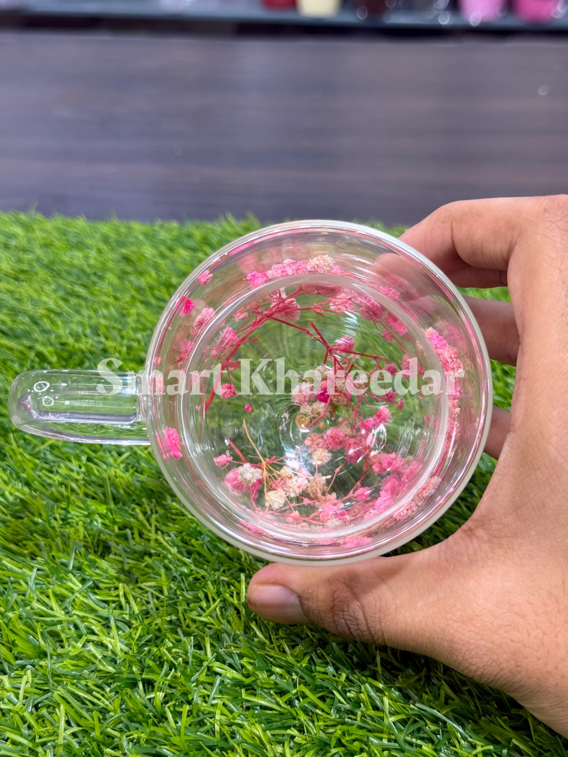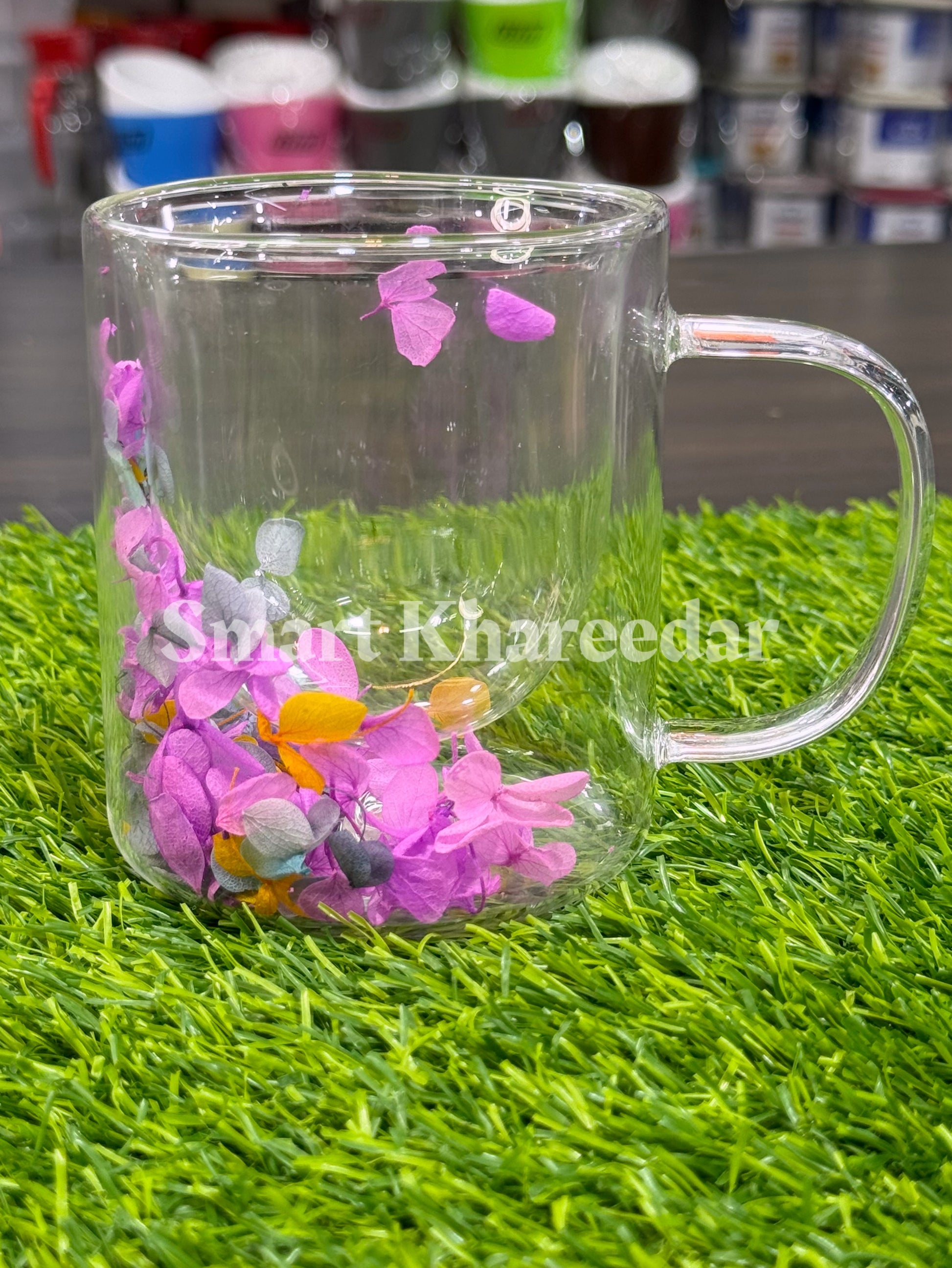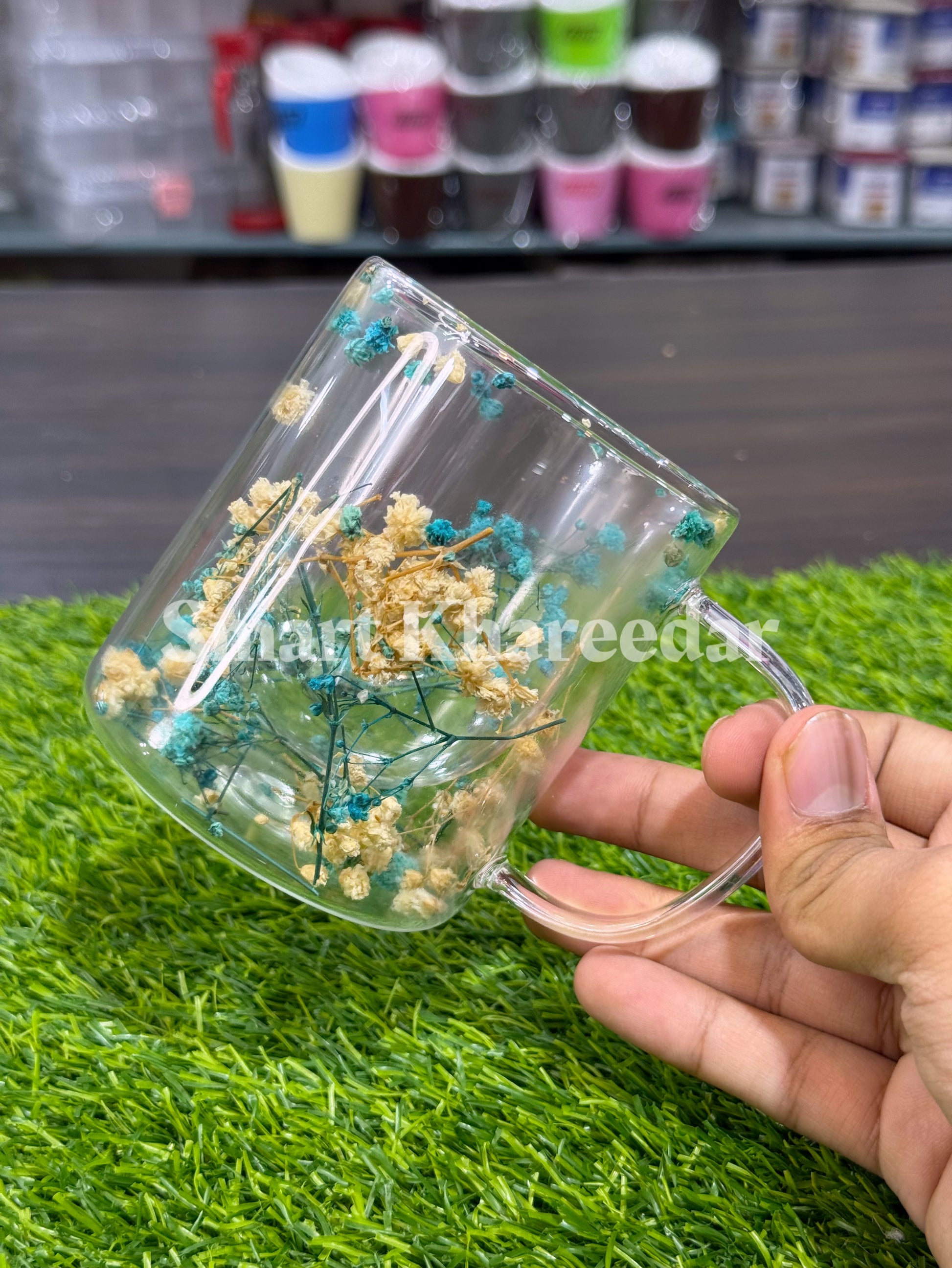 Double Wall Dry Flower 320ml Glass Coffee Mug and Tea Cup | Model no 6