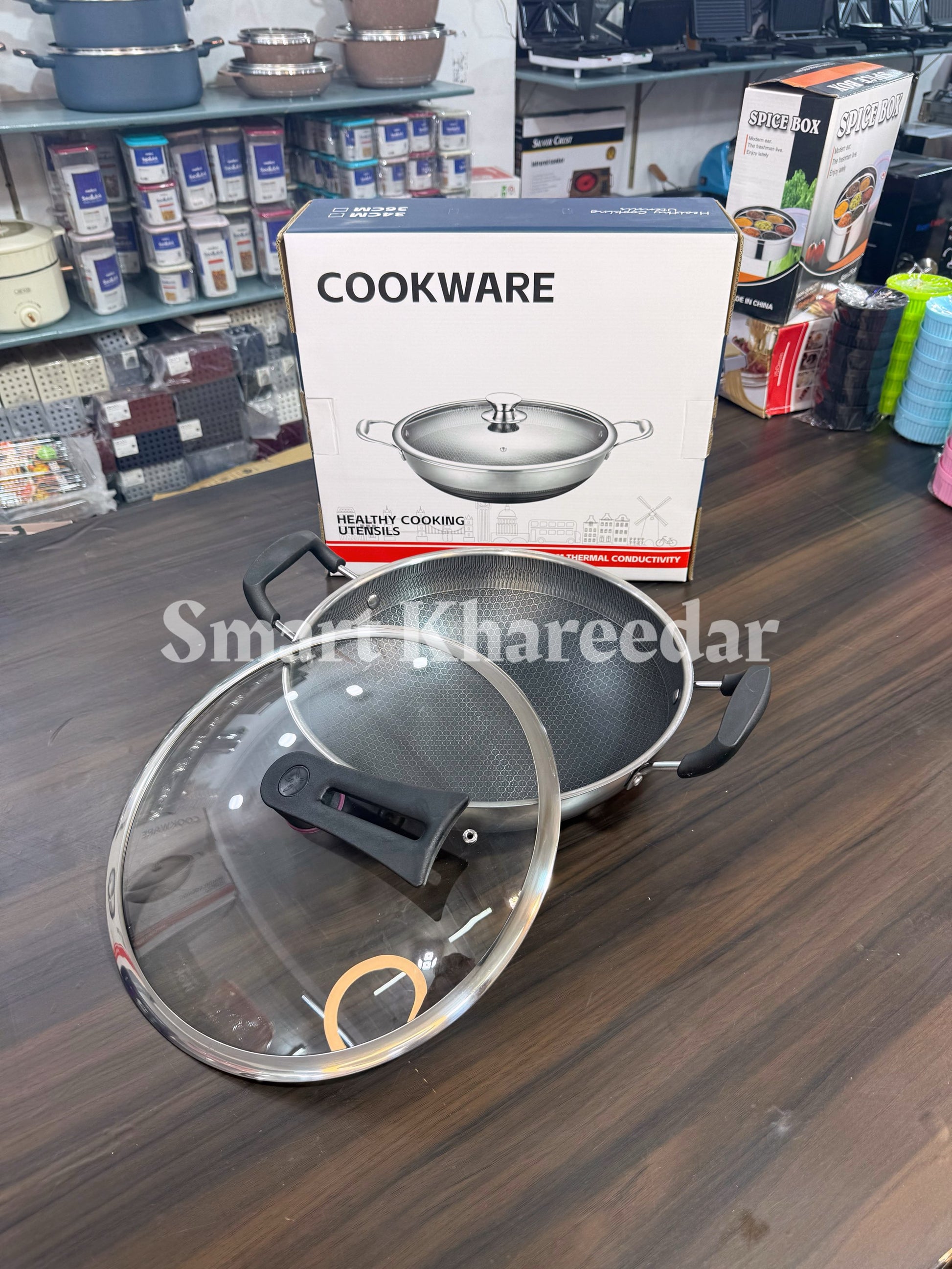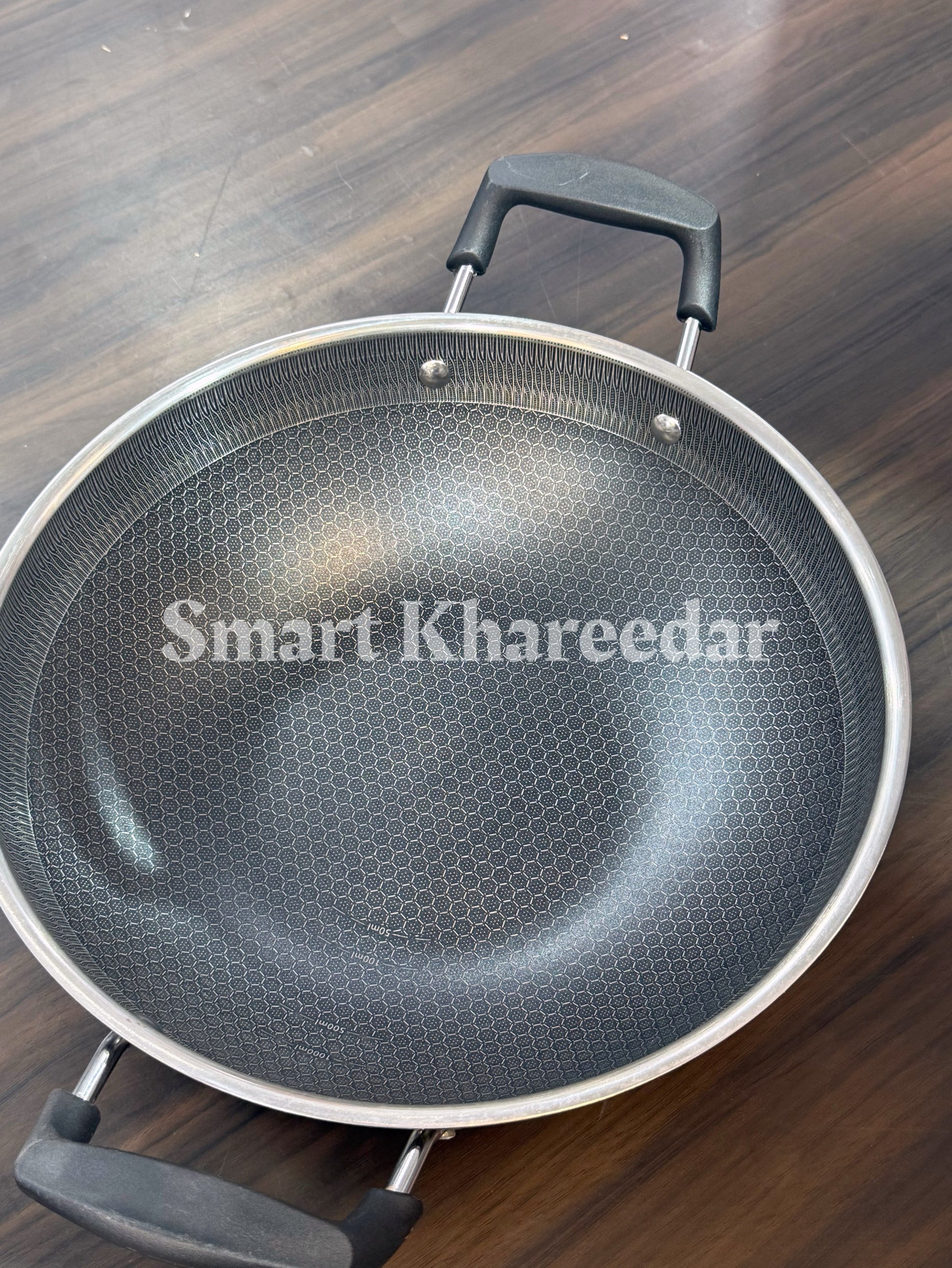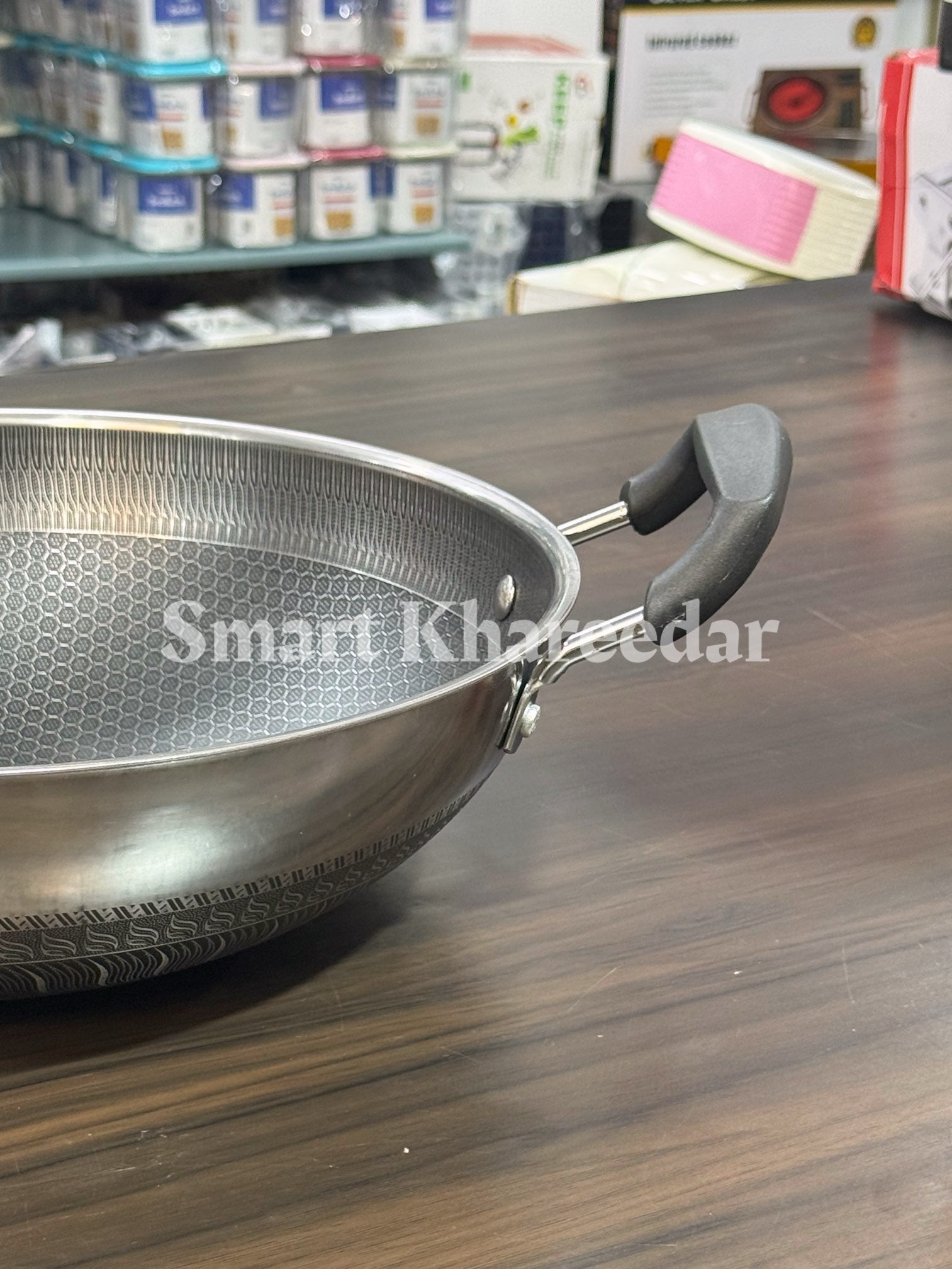 Dual Side Honeycomb LaserCut Karahi - Deep Shallow Pan - Double Handle