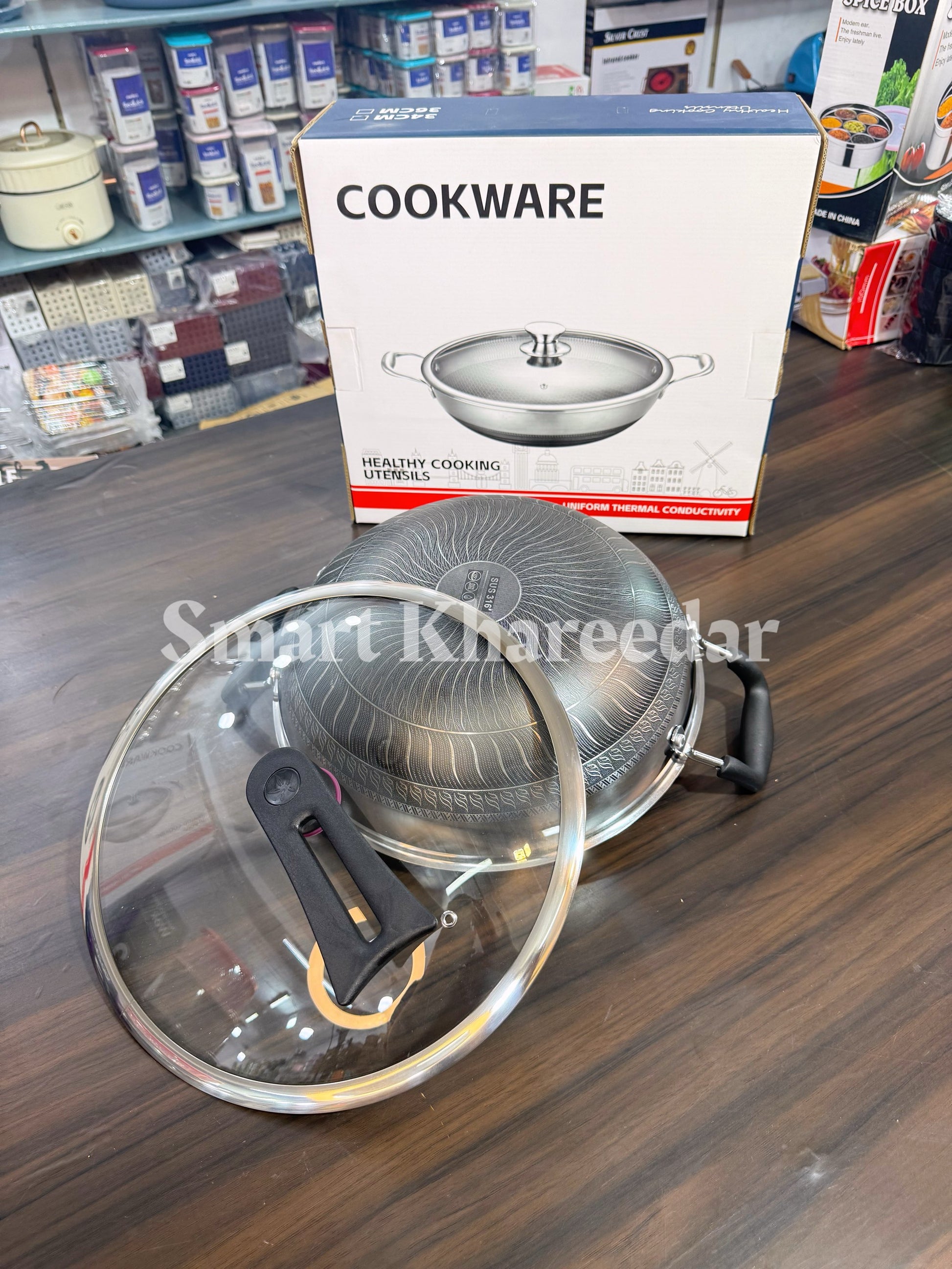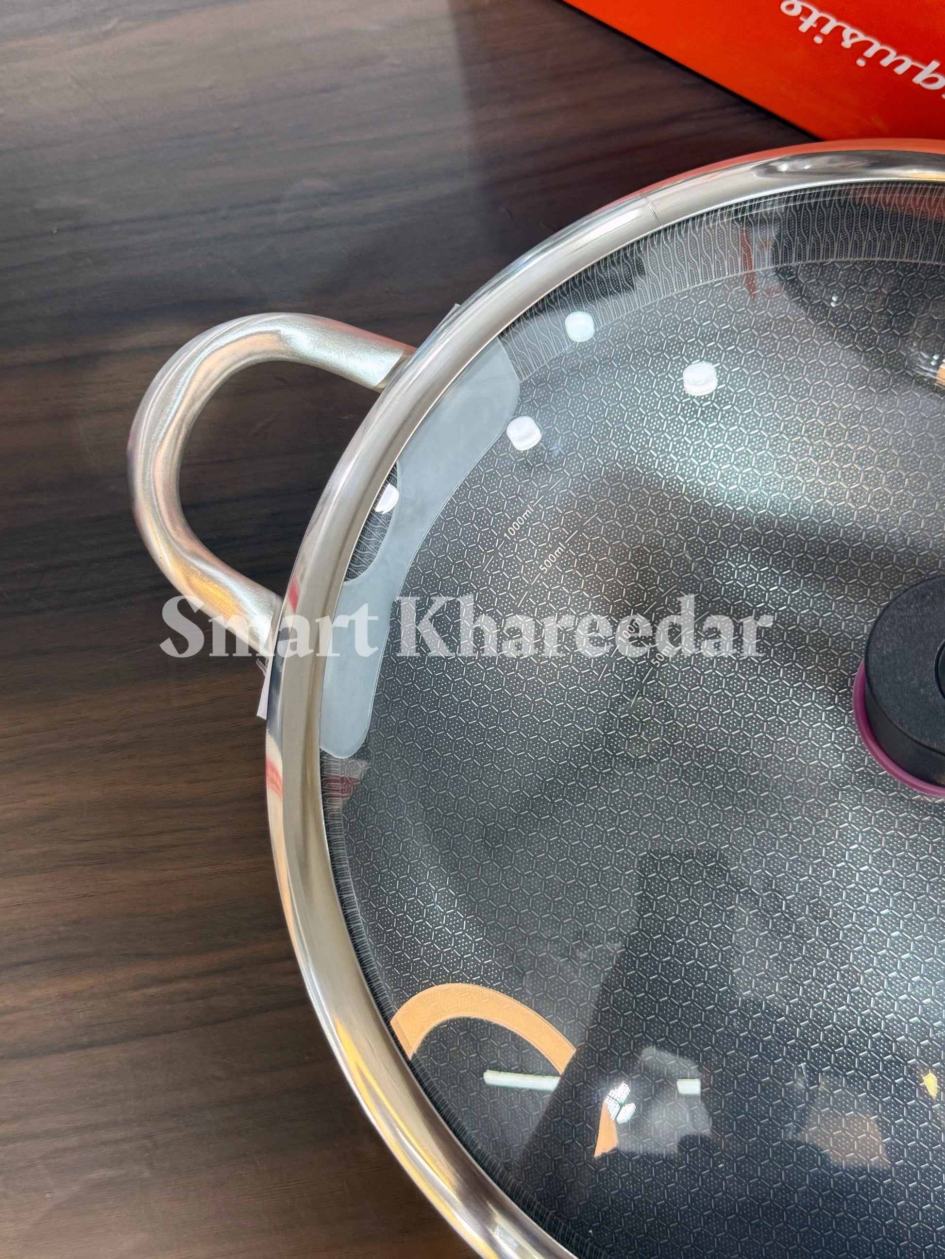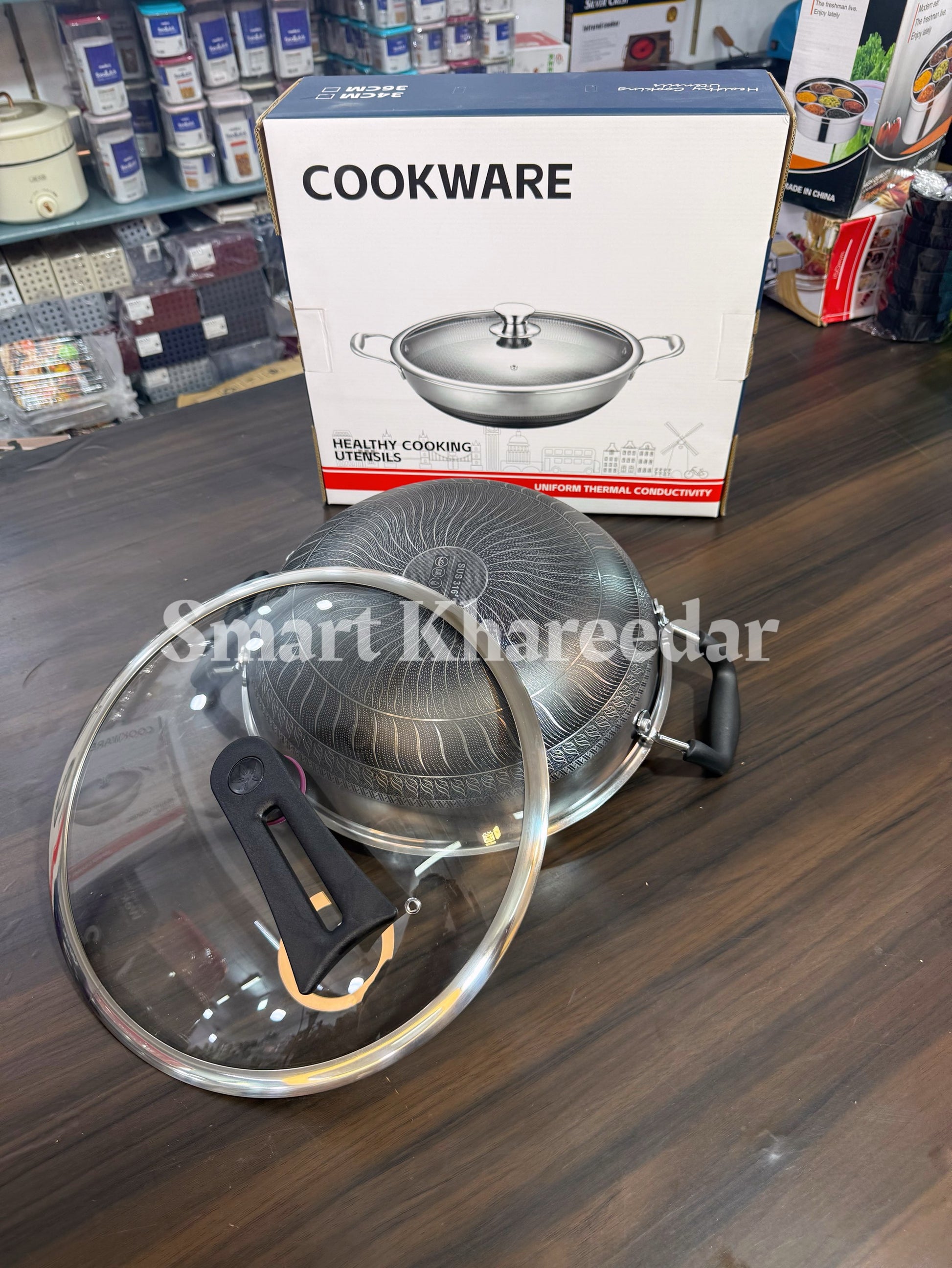 Dual Side Honeycomb LaserCut Karahi - Deep Shallow Pan - Double Handle