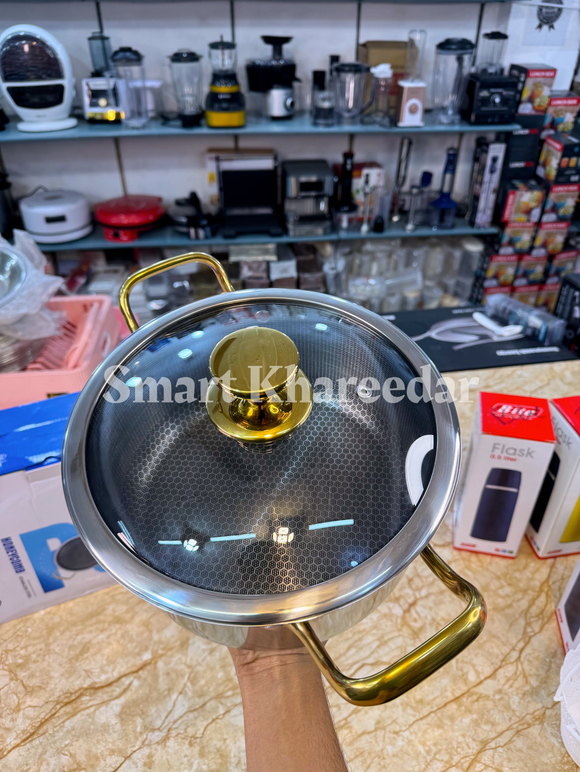 Flanek LaserCut 24cm Honeycomb Cooking Pot with Glass Lid - 5L