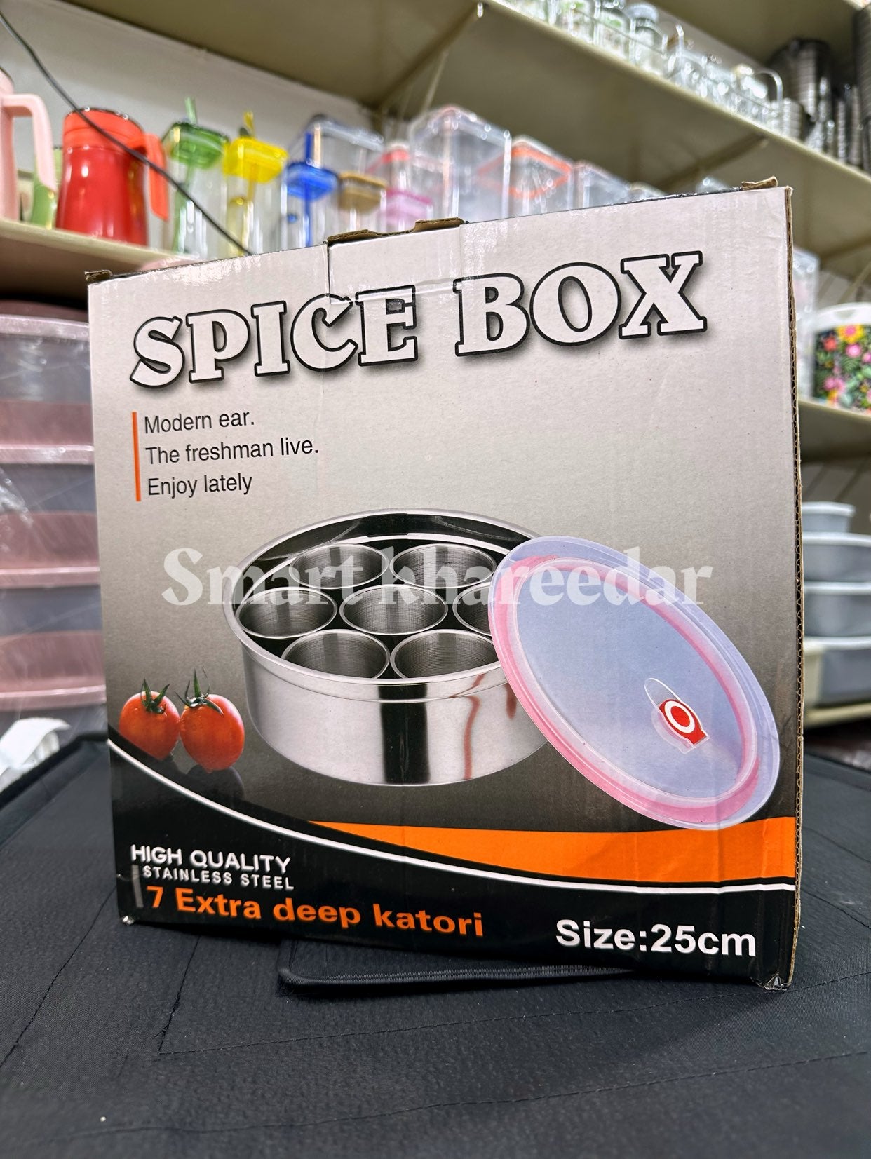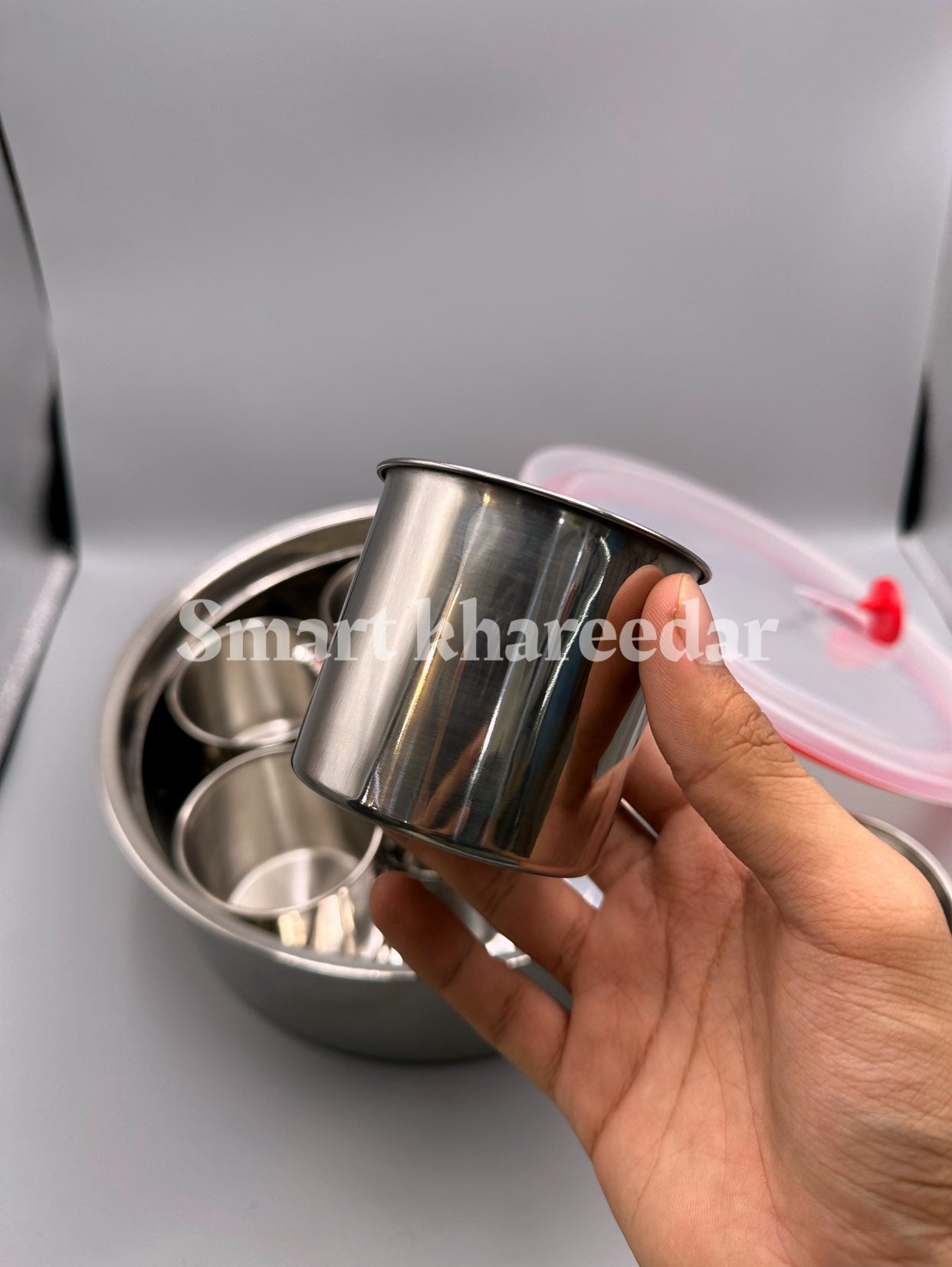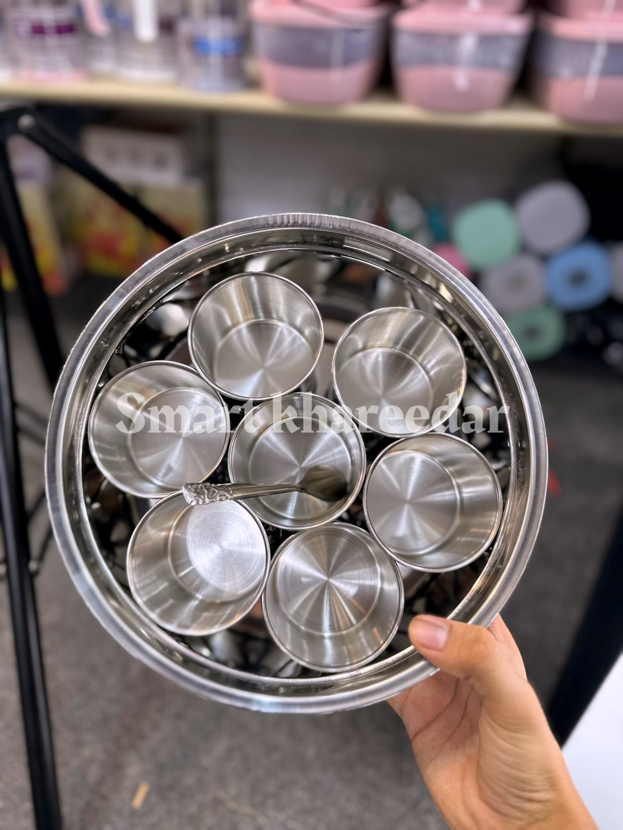 Imported 7pc INDIAN THALLI | Stainless Steel Spice Bowl with Airtight Lid