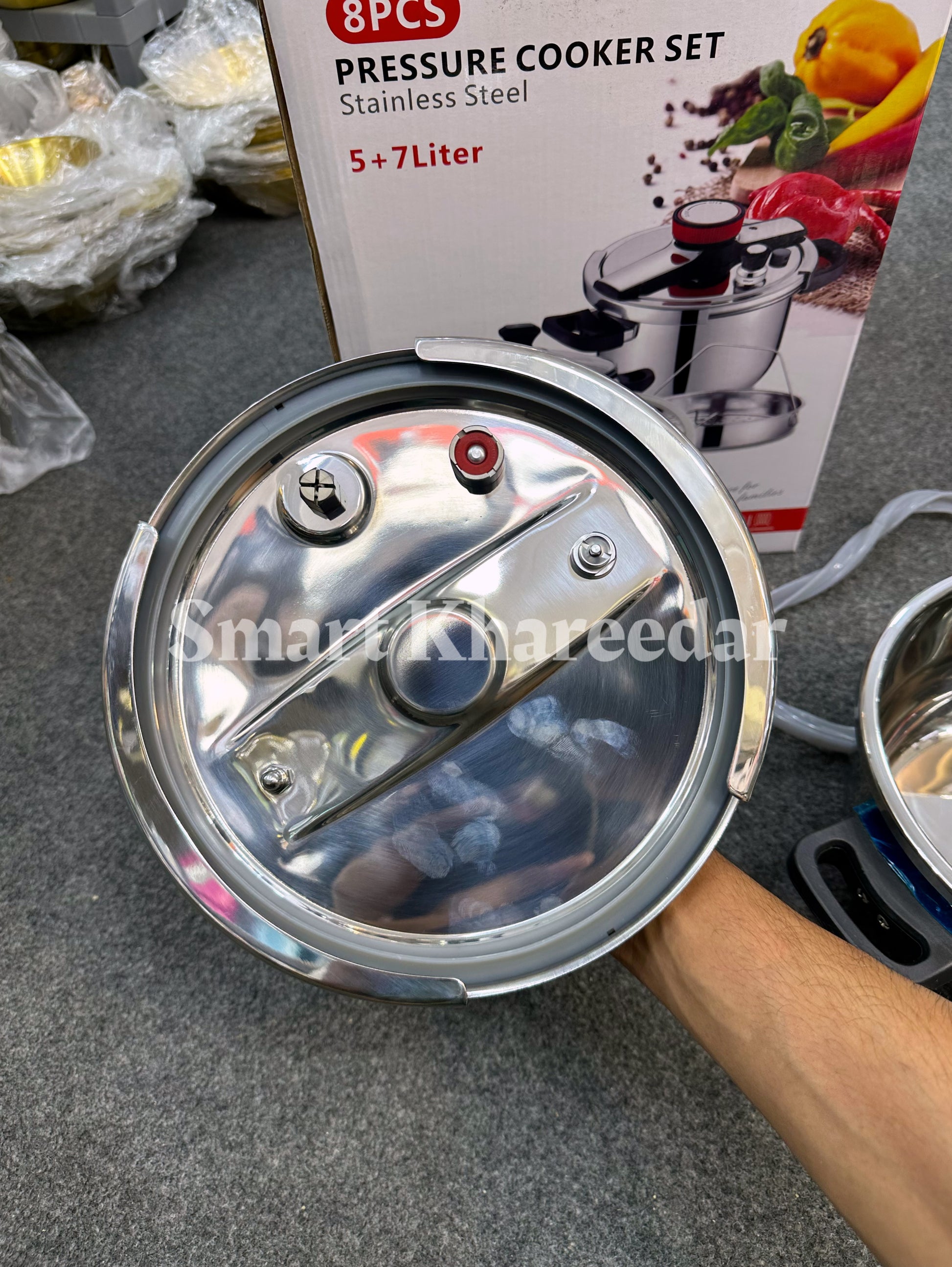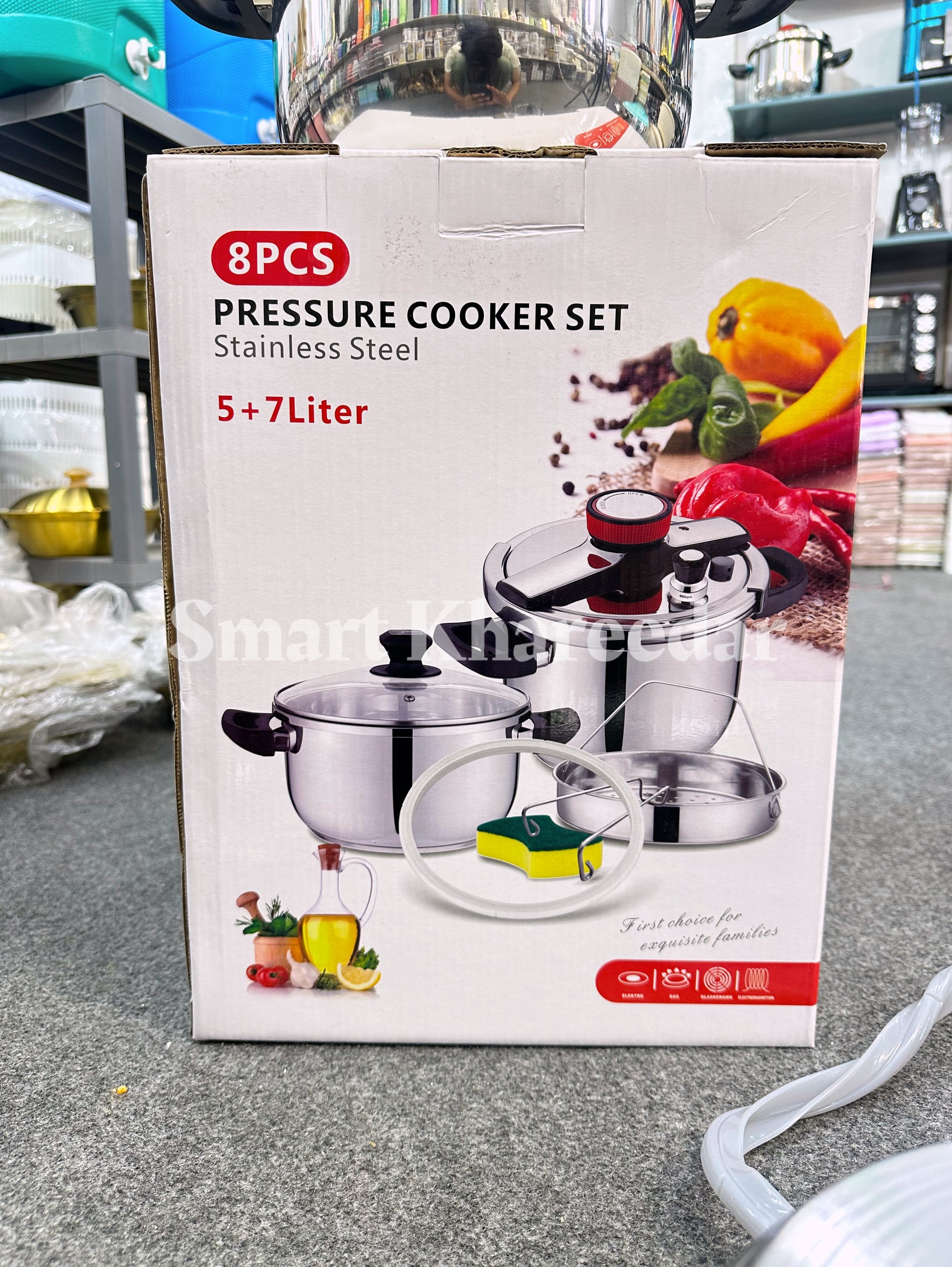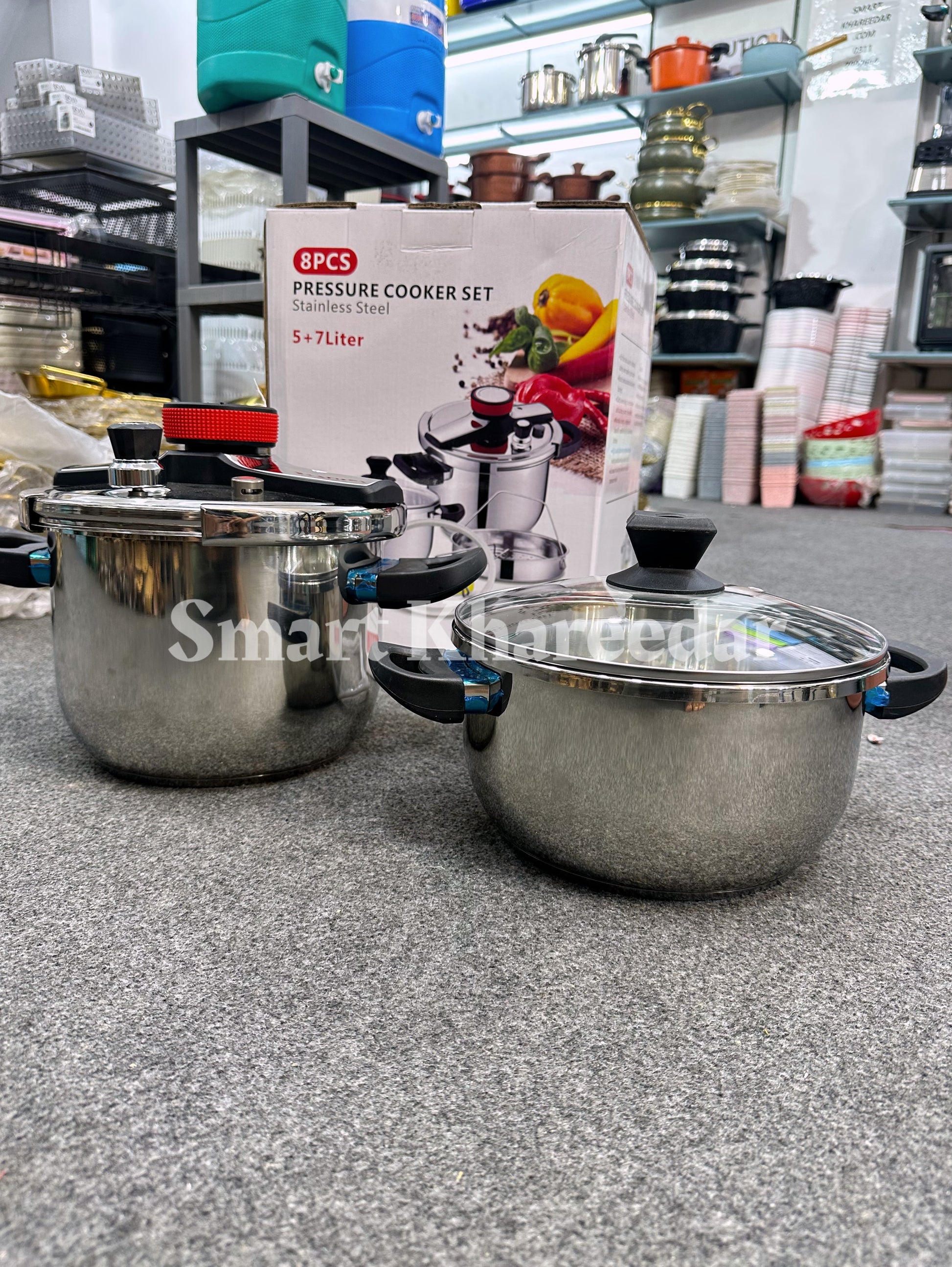 Imported Lot 2pc Stainless Steel 2 Pc Pressure Cooker and Casserole Pot with Steamer [5+7L]