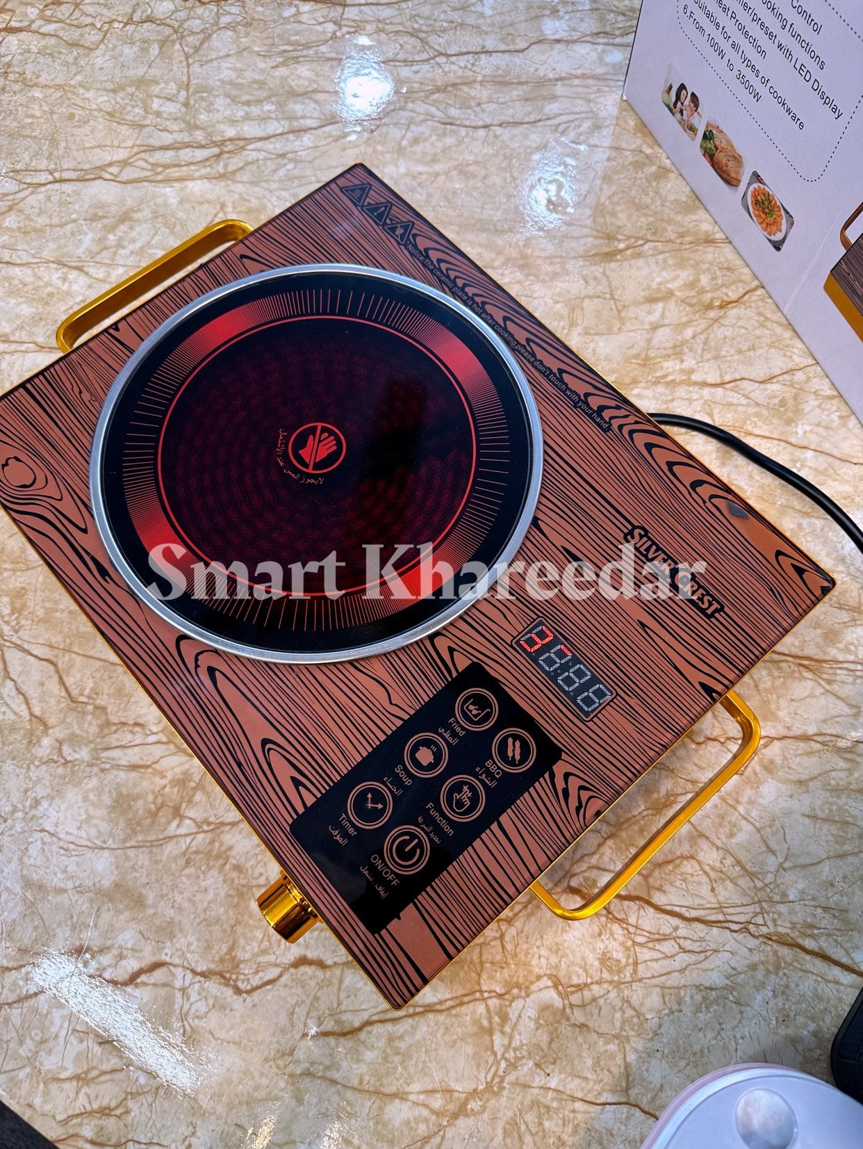 Modernize your cooking experience with the touch panel, offering easy and precise control. The Silver Crest Electric Stove is compatible with a wide range of cookware, including iron, steel, aluminum, glass, silver, non-stick, die-cast, and ceramic.