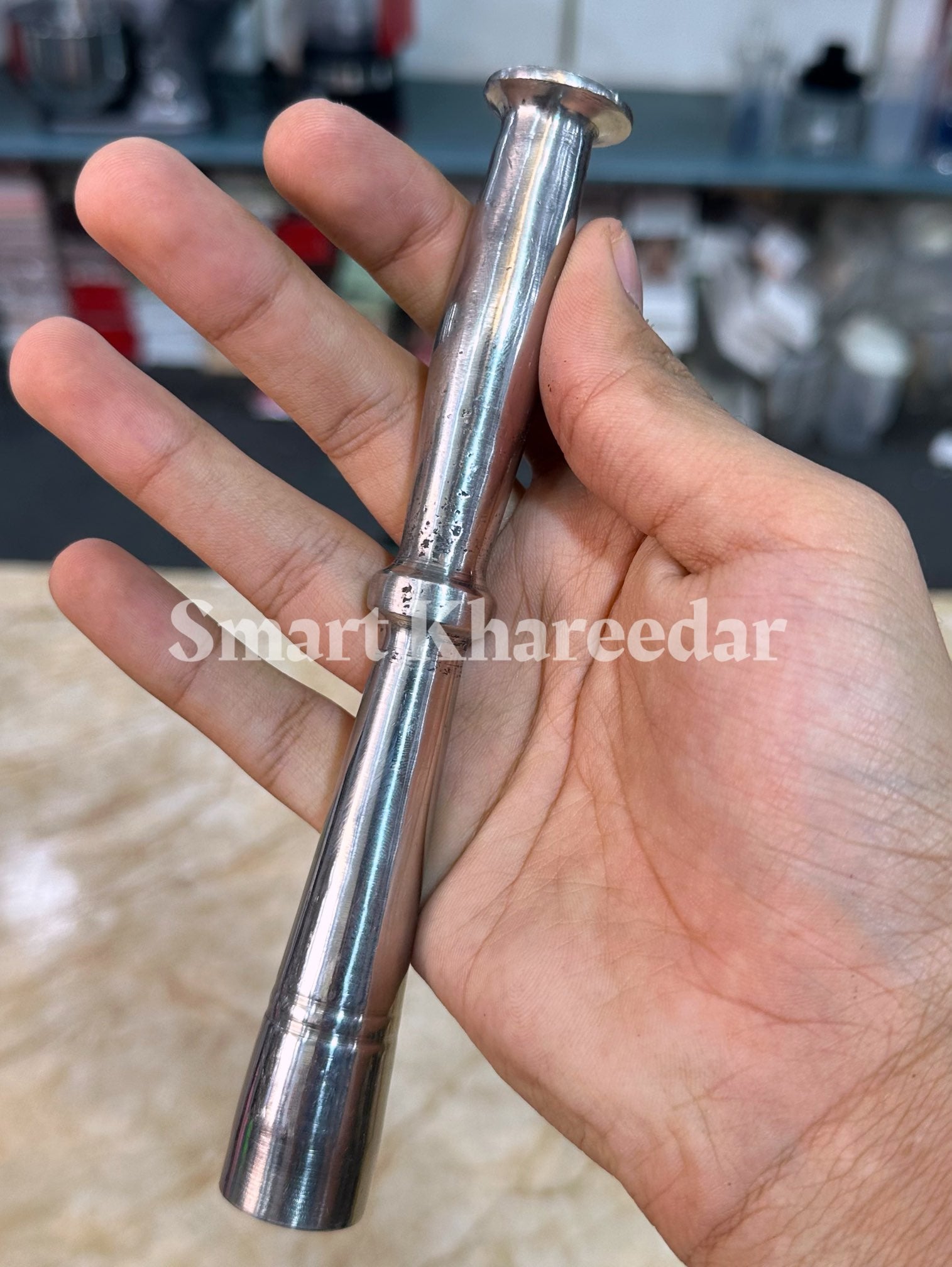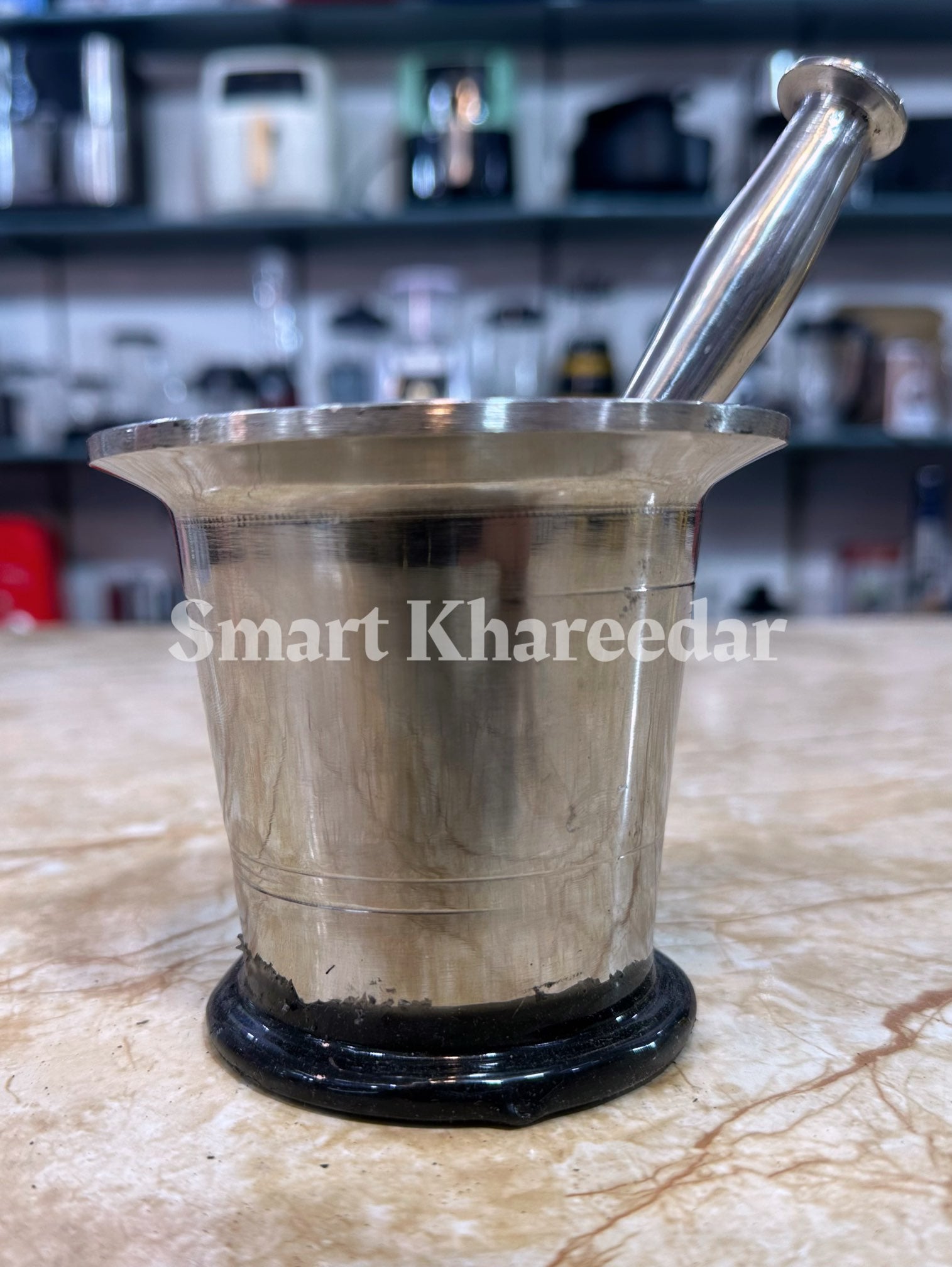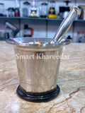 Stainless Steel Spice Grinder, Langri for Grinding Chillies Mixing & Mincing Lungri Kitchen, Mortar and Pestle Set (Dasta Height 22cm) (Hawan Height 12cm) Hawan Dasta For Home Kitchen Supplies Grinding Tool - Chattu Watta