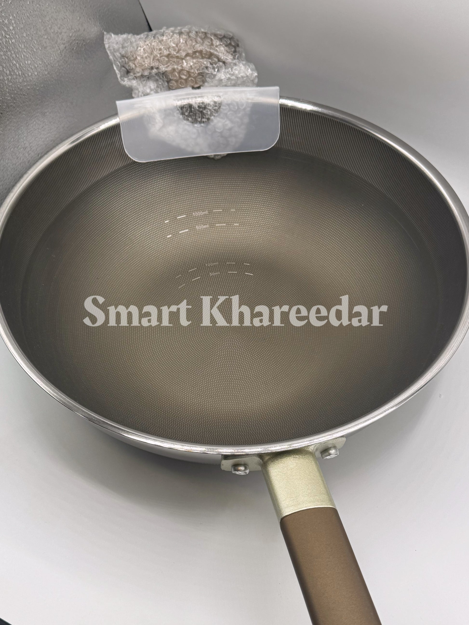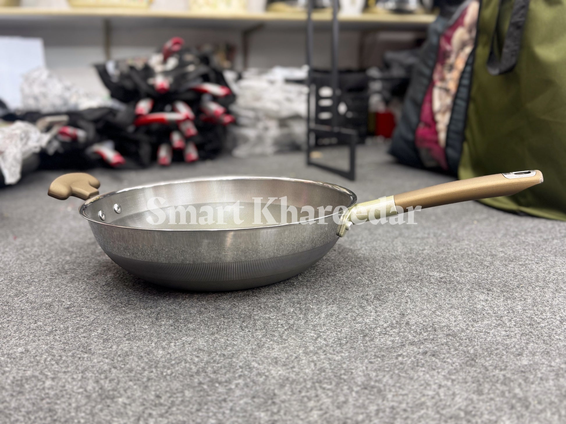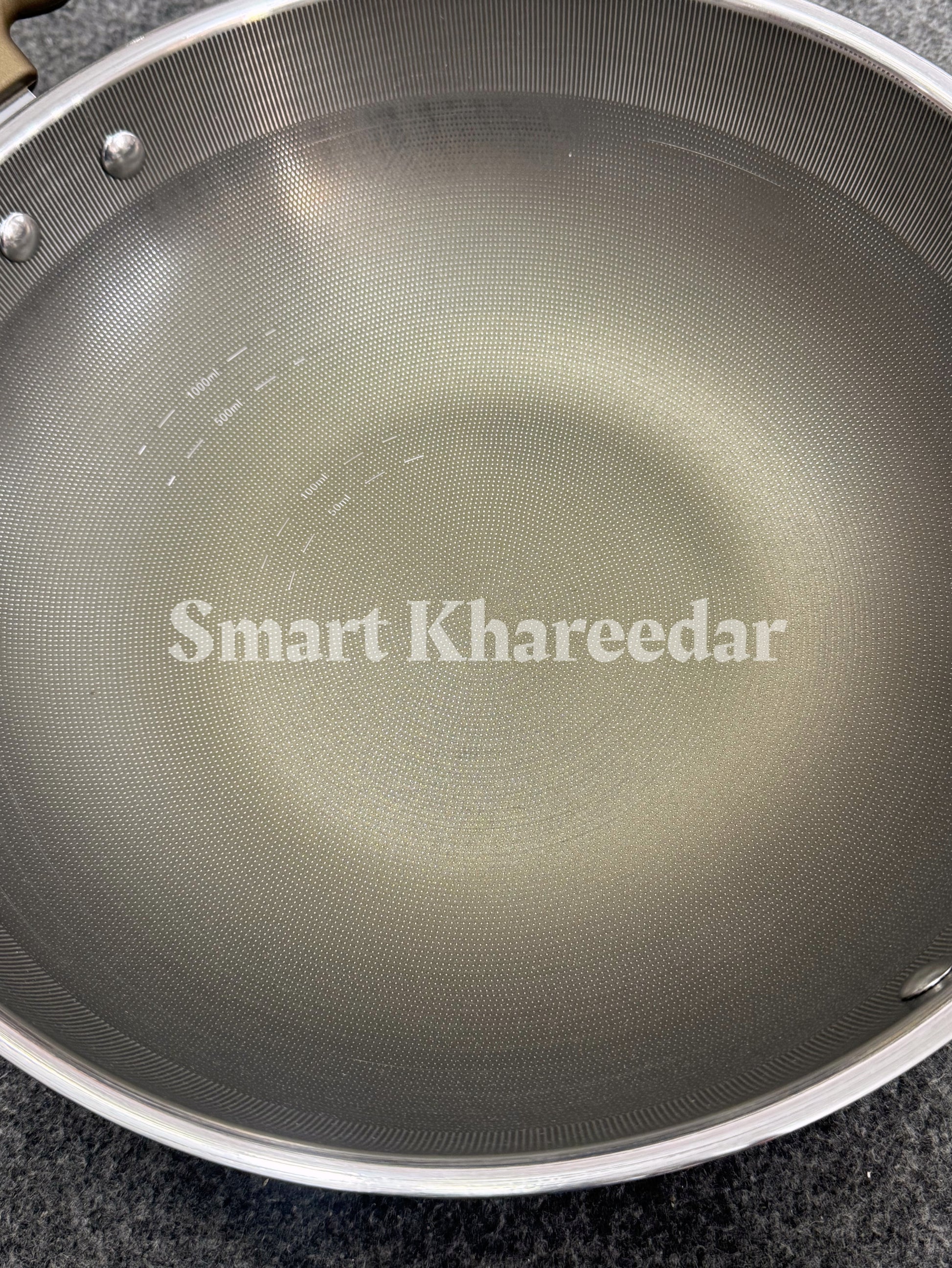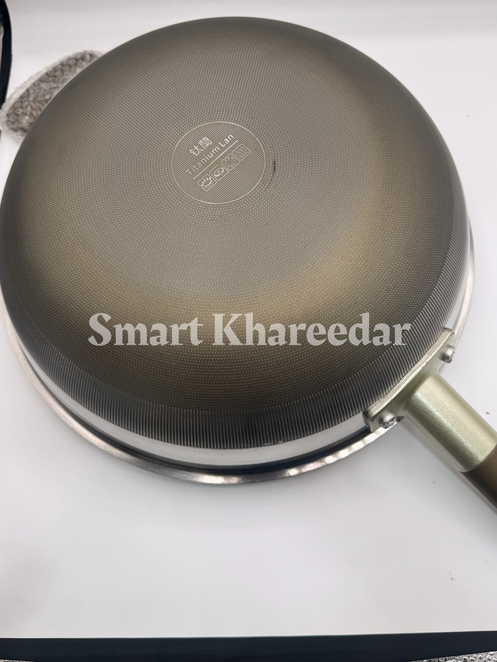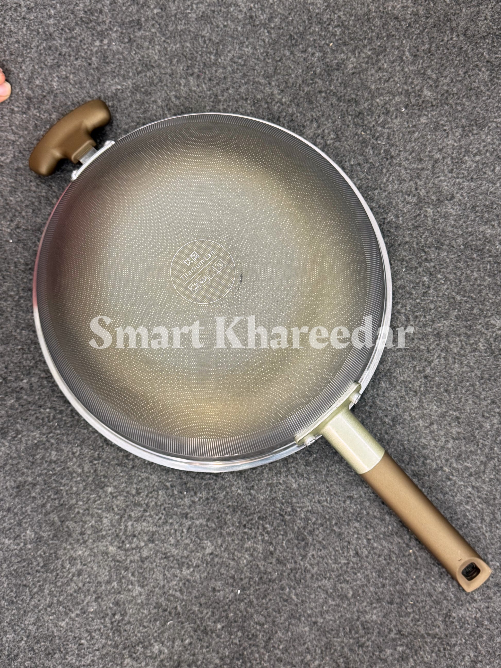 Titanium Non-Stick Karahi Wok Pan – 34cm | Dual Handle (Long & Short) Heavy-Duty Design