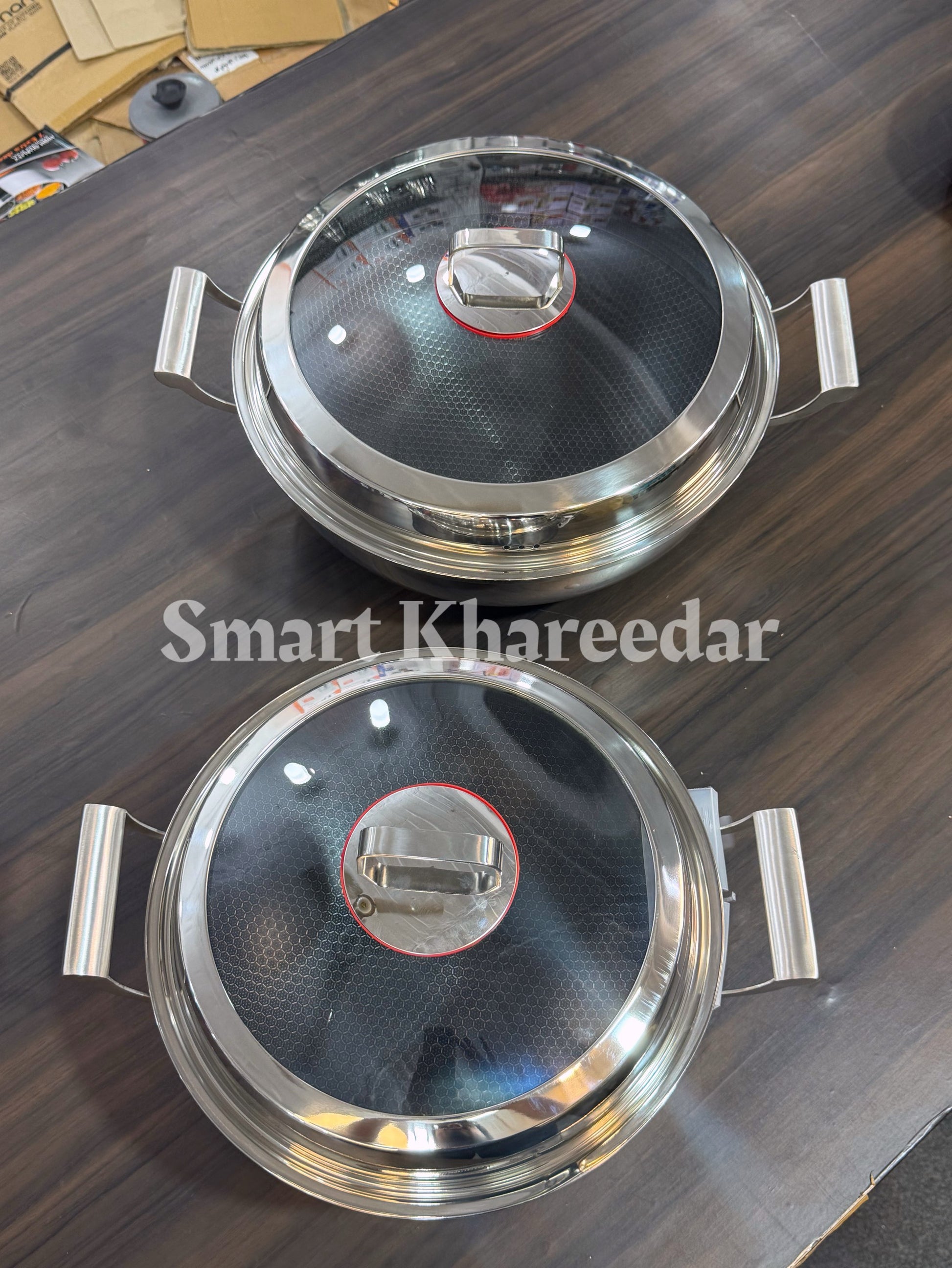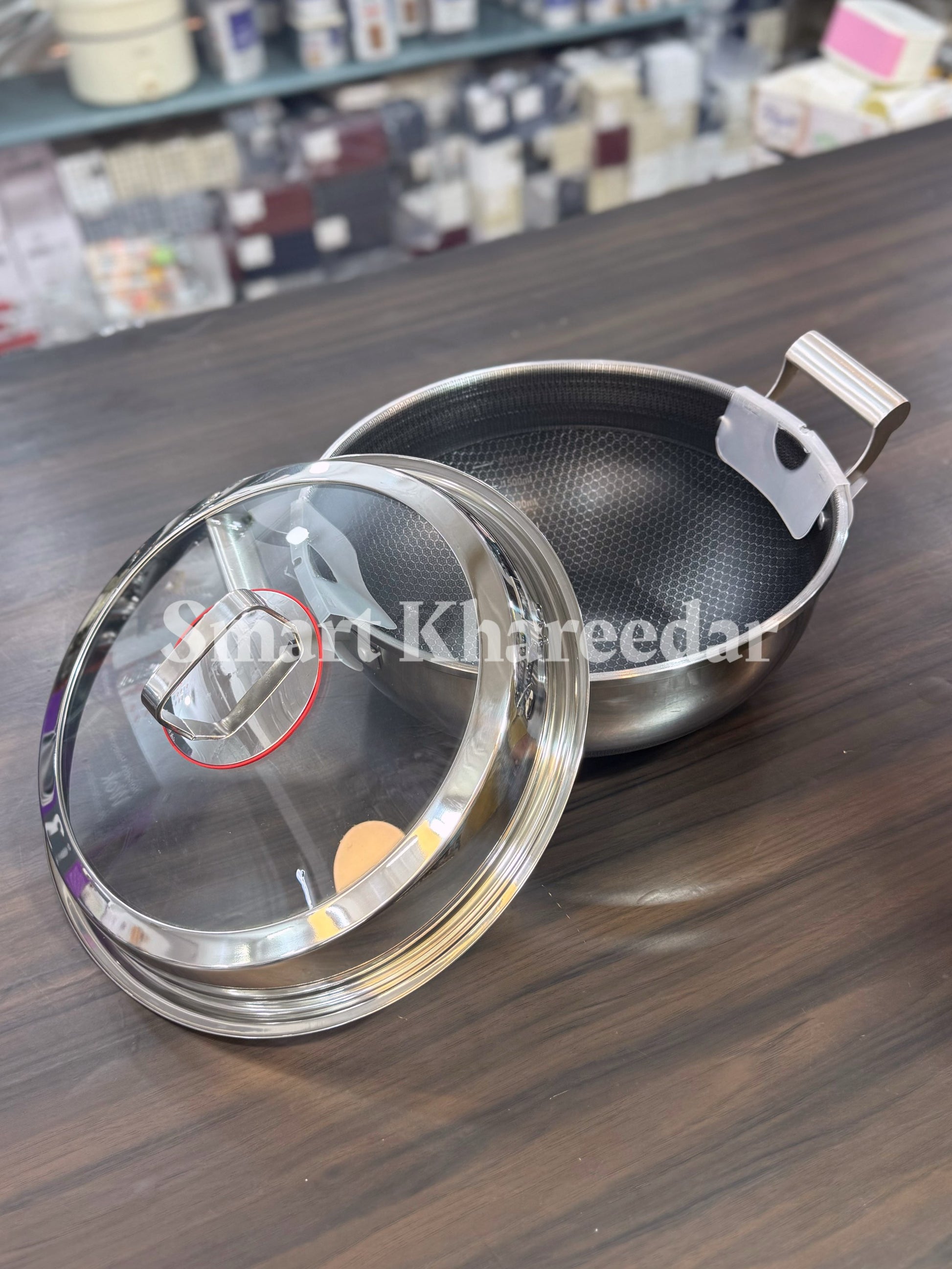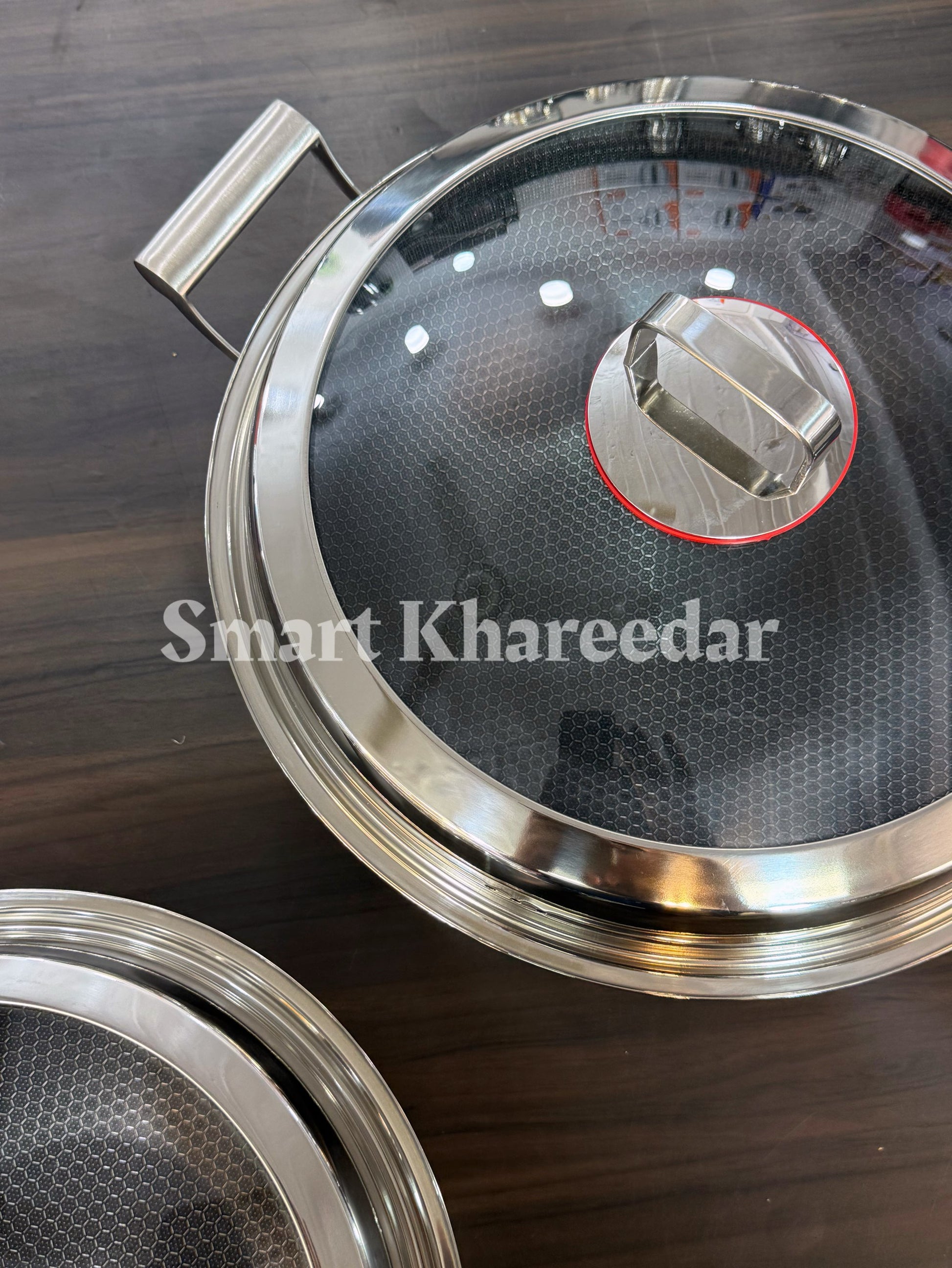 Jumbo Honeycomb LaserCut Karahi with Tempered Glass Lid - Deep Cooking Pot