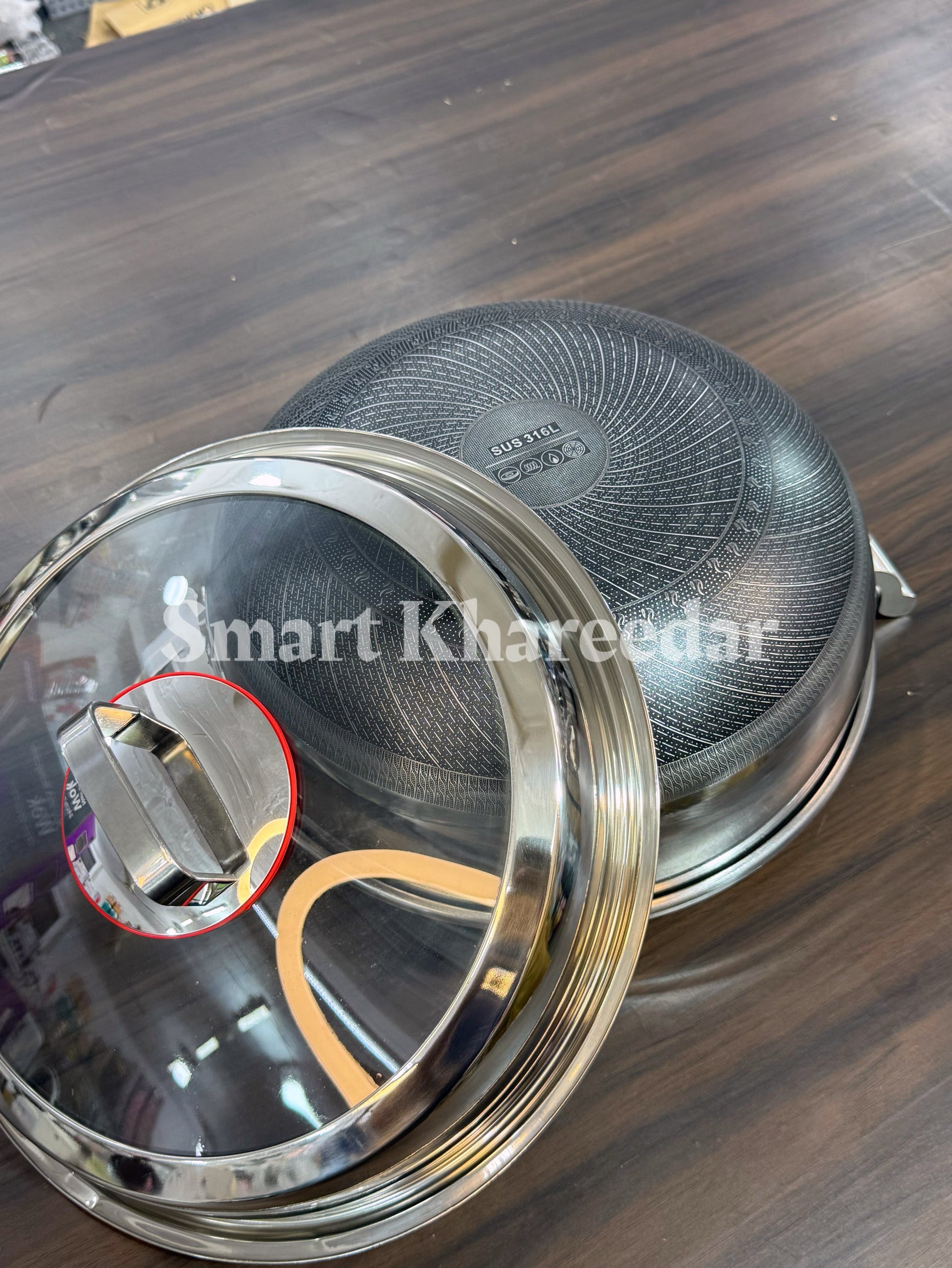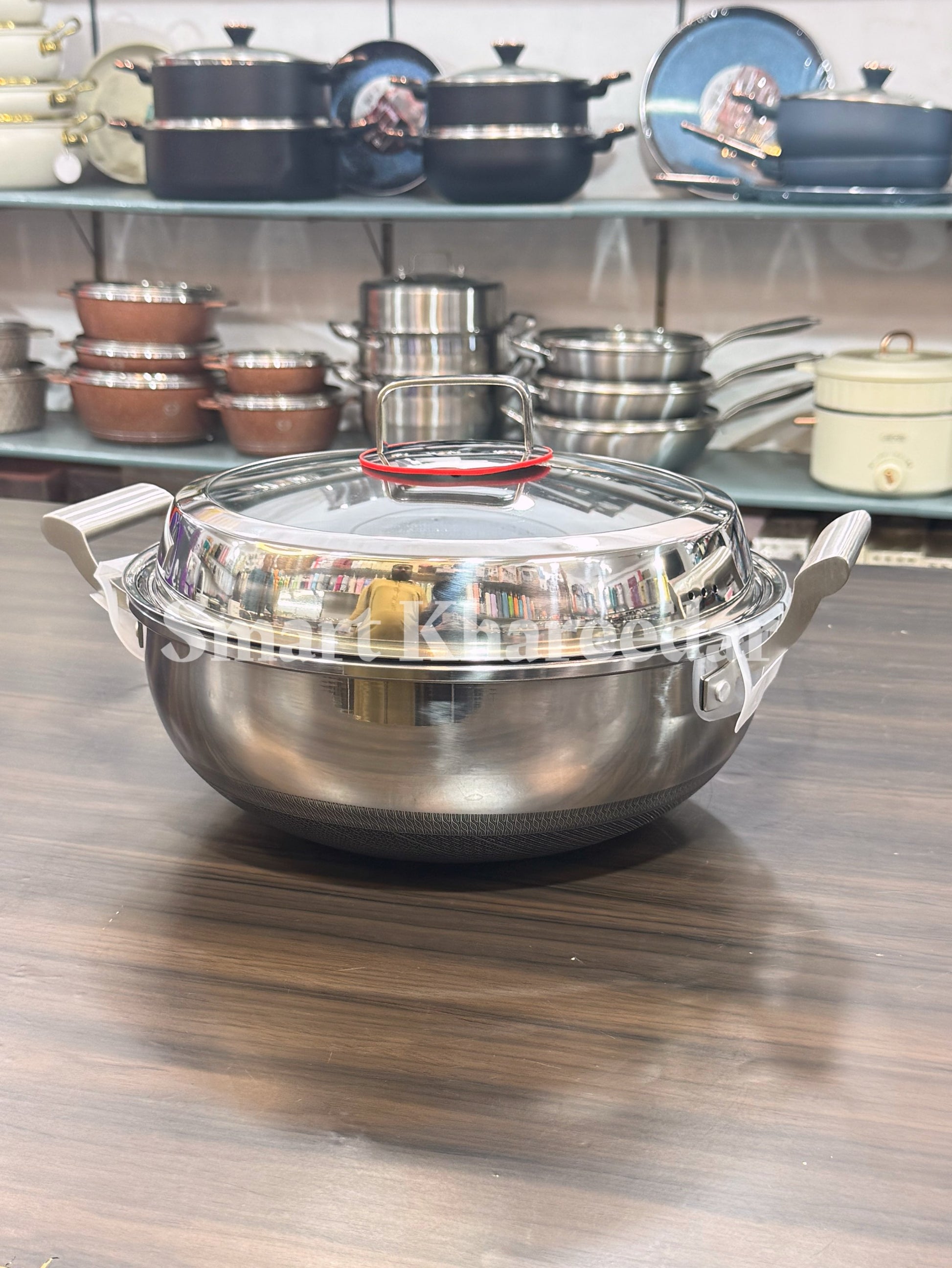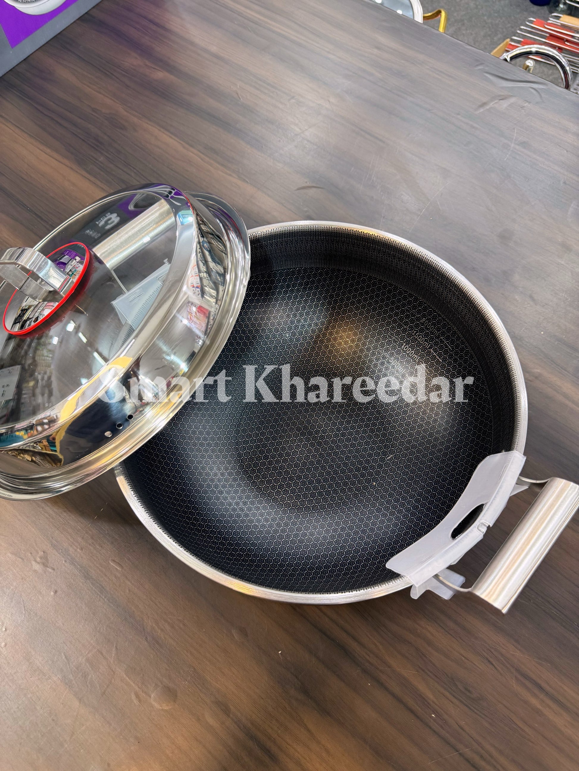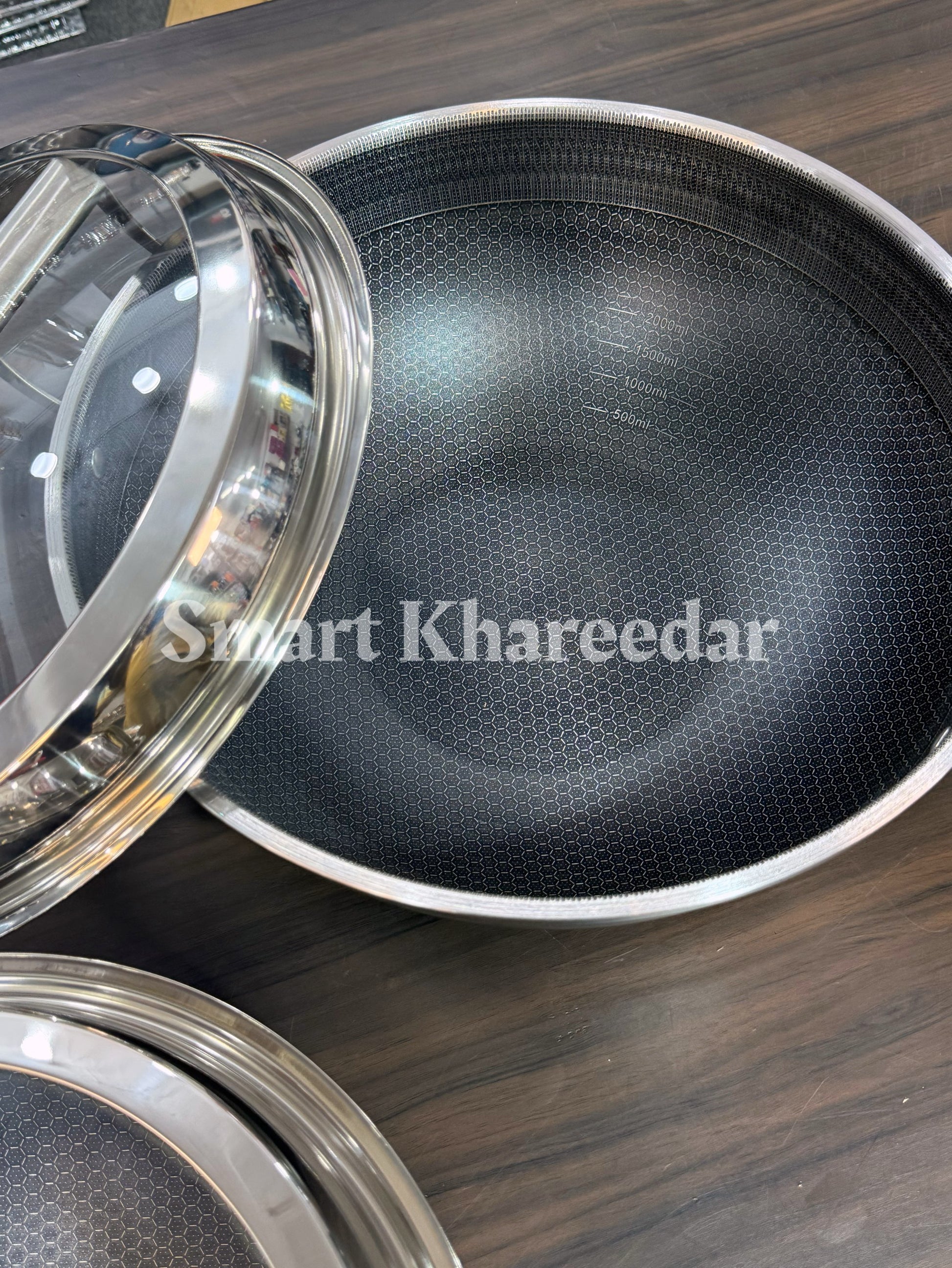 Jumbo Honeycomb LaserCut Karahi with Tempered Glass Lid - Deep Cooking Pot